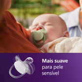 Cuidados premium para peles sensíveis com escudo flexível. 9 em cada 10 pais concordam: o meu bebé não tem irritação da pele depois de começar a utilizar a chupeta Ultra Soft.