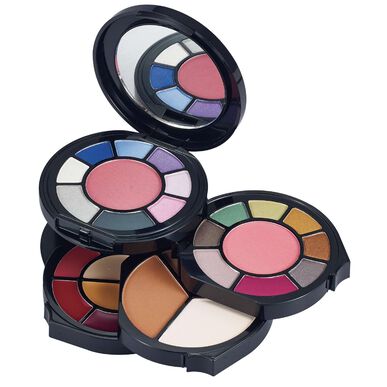 Esta paleta contém:16 sombras, 6 lipgloss, 2 blush, 1 pó de contorno e 3 contornos em creme.