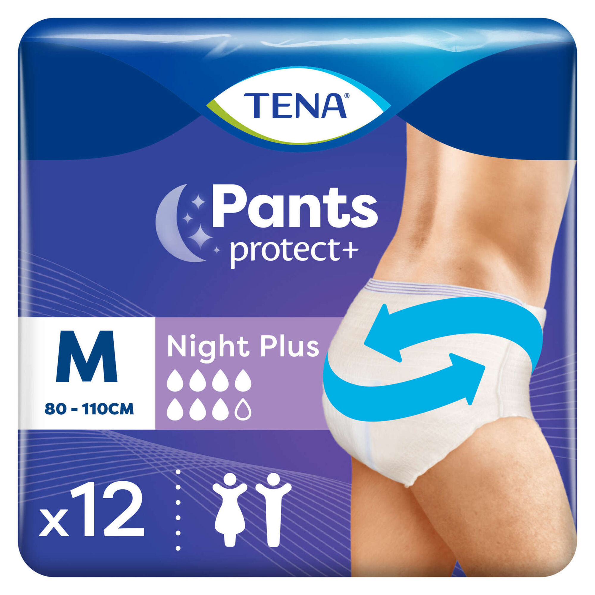TENA Pants Night Plus são cuecas para incontinência capazes de oferecer uma elevada proteção contra perdas noturnas de moderadas a graves. Graças à tecnologia Lie Down Protection, asseguram uma maior absorção na parte traseira, onde é mais necessário quando se está deitado.