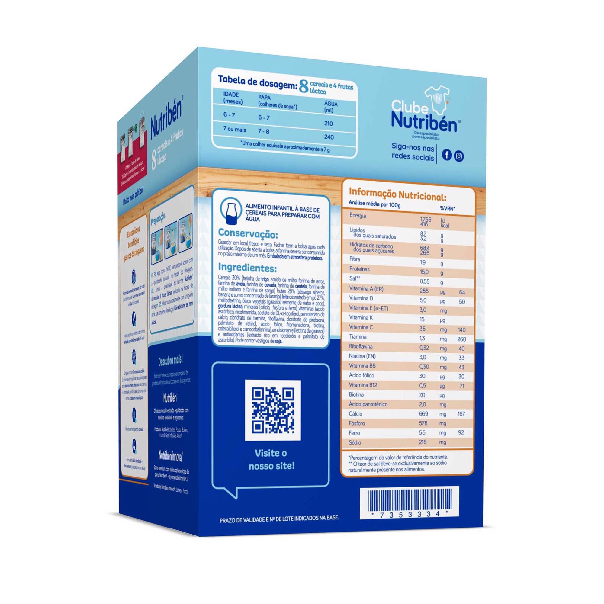 Esta é uma papa láctea: enriquecida com vitaminas e minerais; sem adição de açúcares (contém apenas os açúcares naturalmente presentes); que contém glúten; sem óleo de palma; livre de transgénicos.