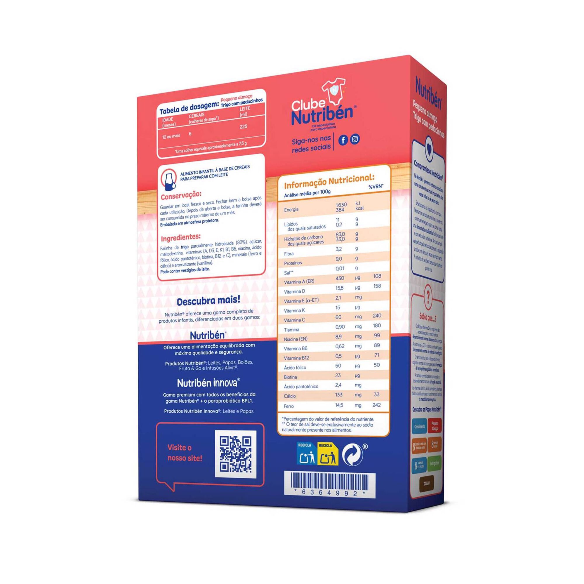 Pequeno Almoço Nutribén é um pequeno-almoço completo e equilibrado para crianças a partir de 1 ano de idade e para toda a família. Maior quantidade de vitaminas e minerais e menor conteúdo de gorduras, quando comparado com um pequeno-almoço convencional que inclua bolachas, bolos, etc. Tem um sabor muito agradável e textura adequada à diversificação alimentar nesta idade.