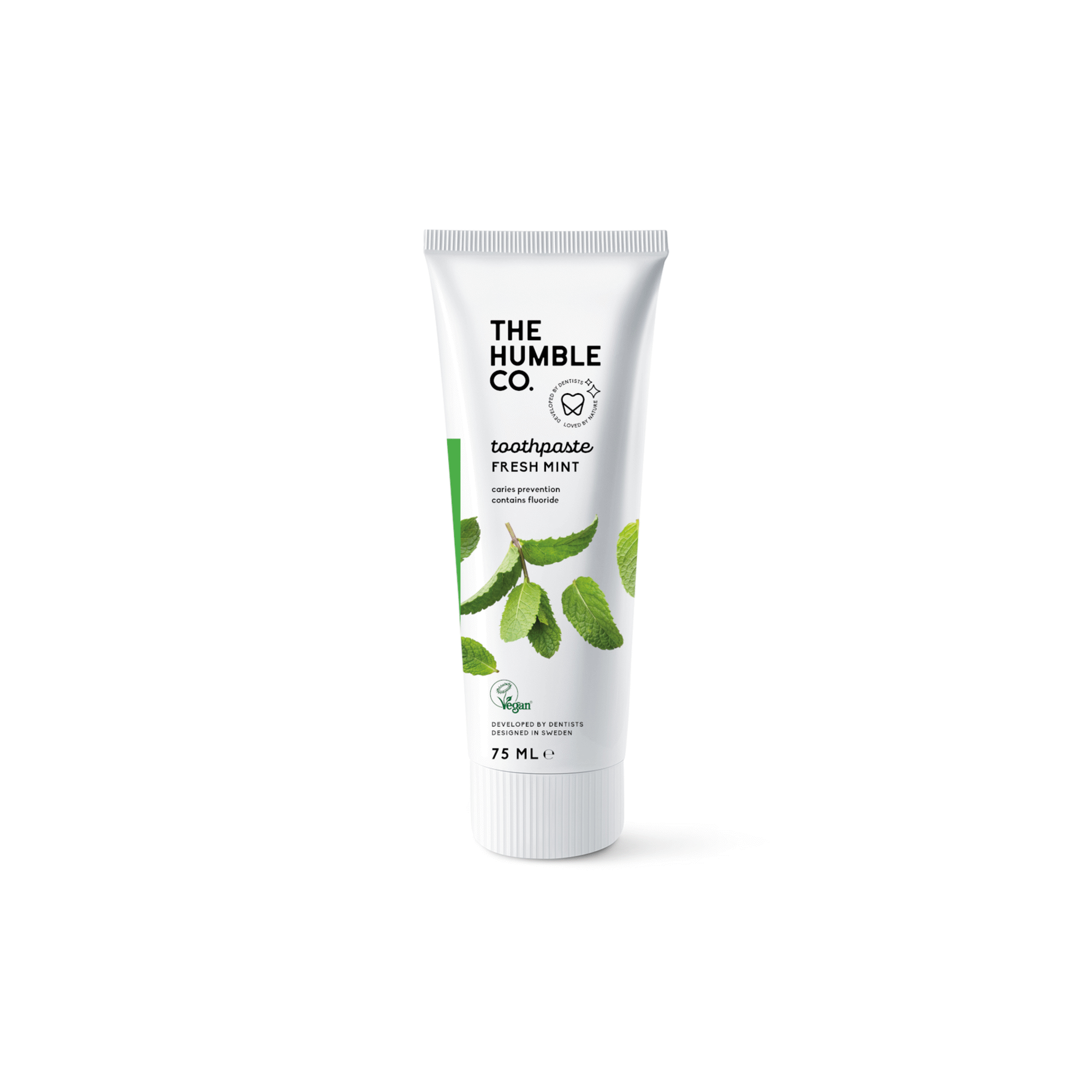 Pasta de dentes de menta que ajuda na prevenção de cáries, gengivas saudáveis e hálito fresco. Uma alternativa vegan, ecológica e moderna aos dentífricos tradicionais, sendo que é ecológico e socialmente responsável.