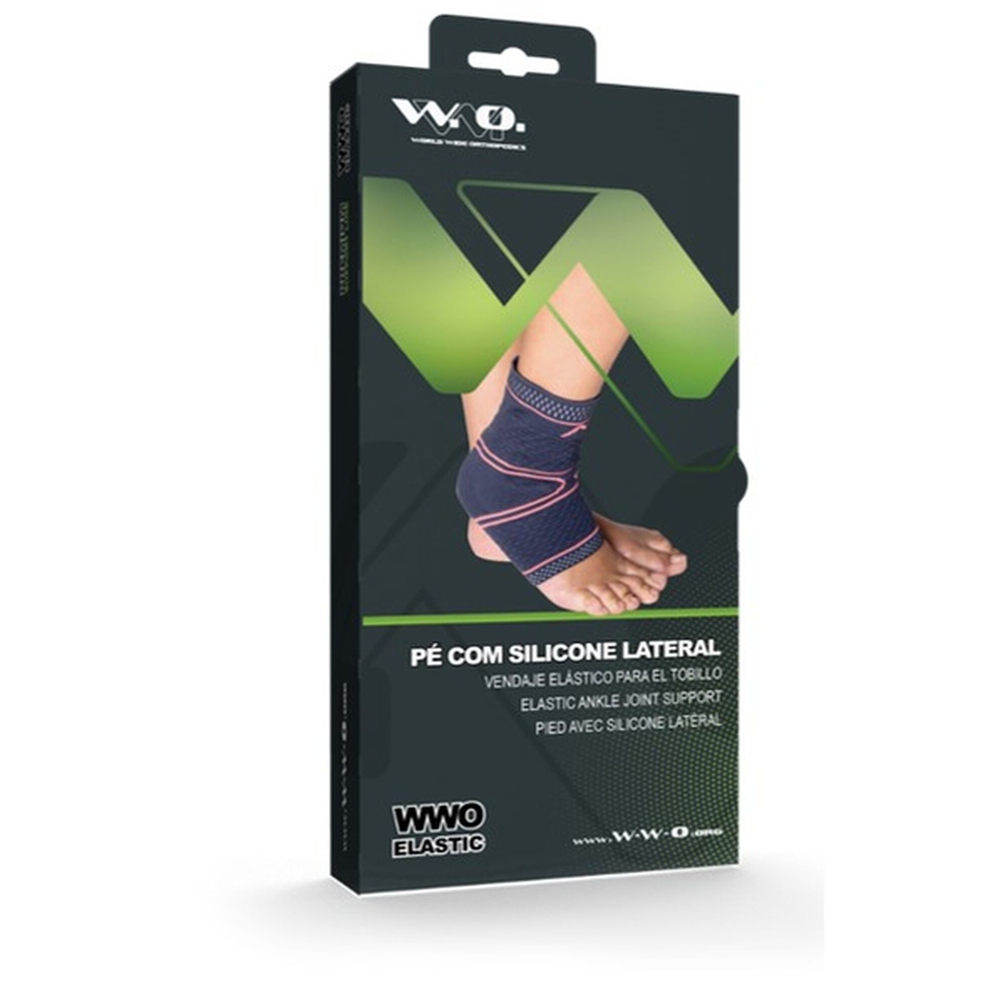 Suporte de tornozelo com almofadas retro-maleolares em silicone, integradas medial e lateralmente. O tecido de compressão e as inserções em silicone exercem um efeito de massagem que promove a circulação e, deste modo, leva a uma resolução mais rápida de hematomas e edemas. O suporte melhora a propriocepção e alcança um melhor suporte muscular (estabilização do tornozelo). Dispositivo Médico.