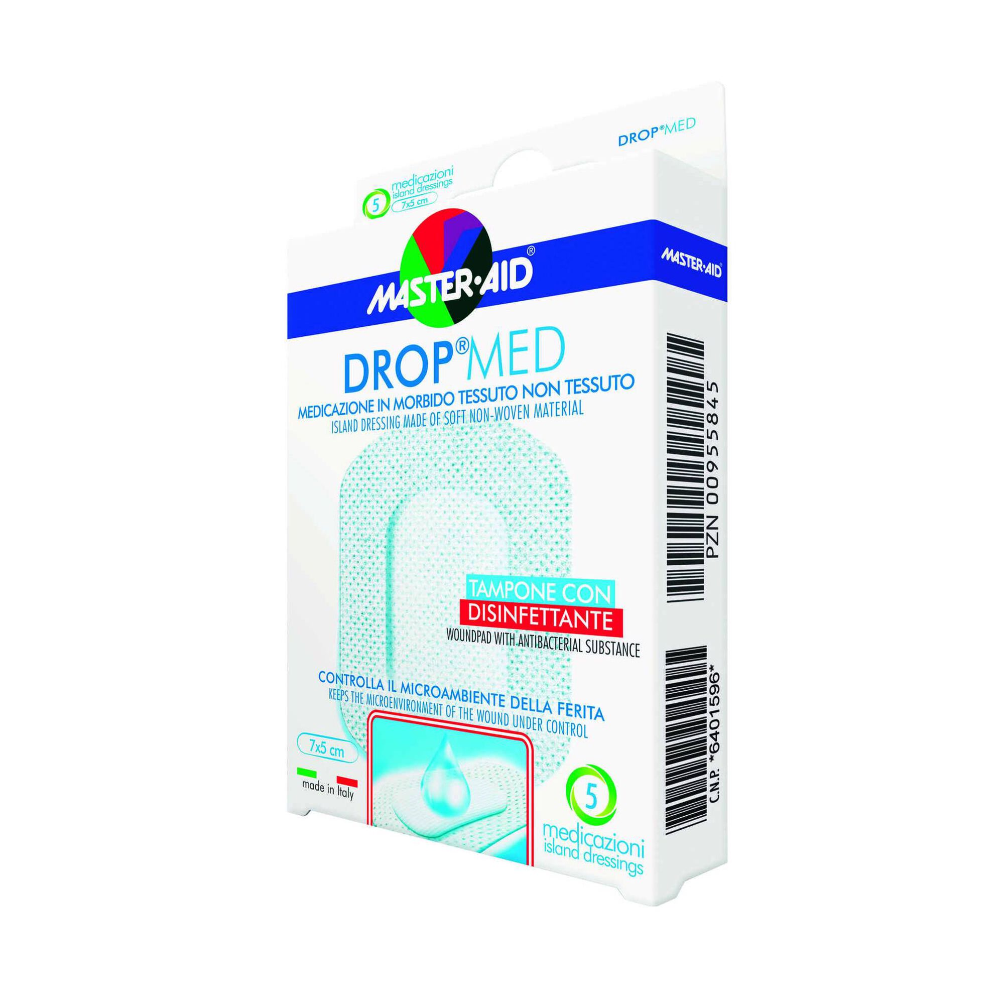 Master-Aid Drop Med Penso Pós-Operatório é um penso de tecido não tecido, esterilizado e permeável ao ar. Contém uma compressa central absorvente com uma substância desinfetante, para evitar a contaminação da ferida. Hipoalergénico. Dispositivo Médico.