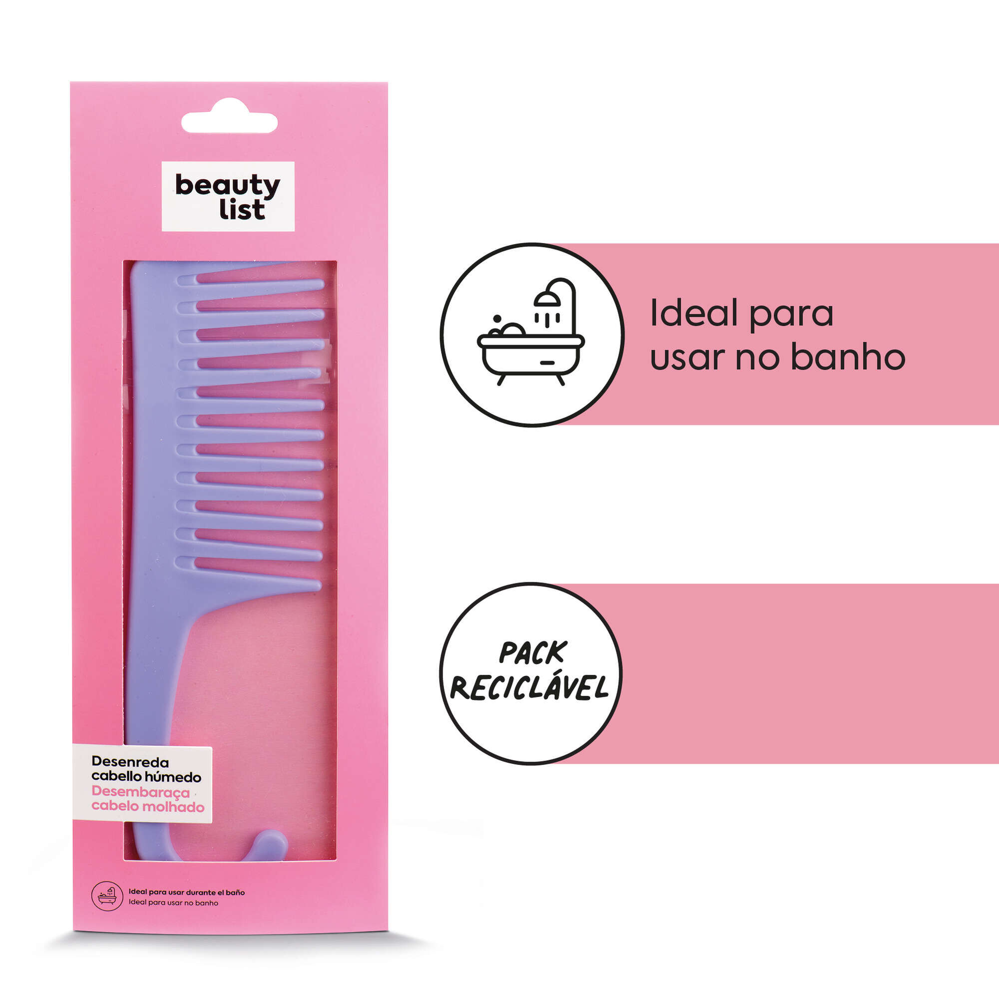 Usar preferencialmente durante o banho, de forma a distribuir condicionador, mousse ou máscara pelo cabelo molhado.