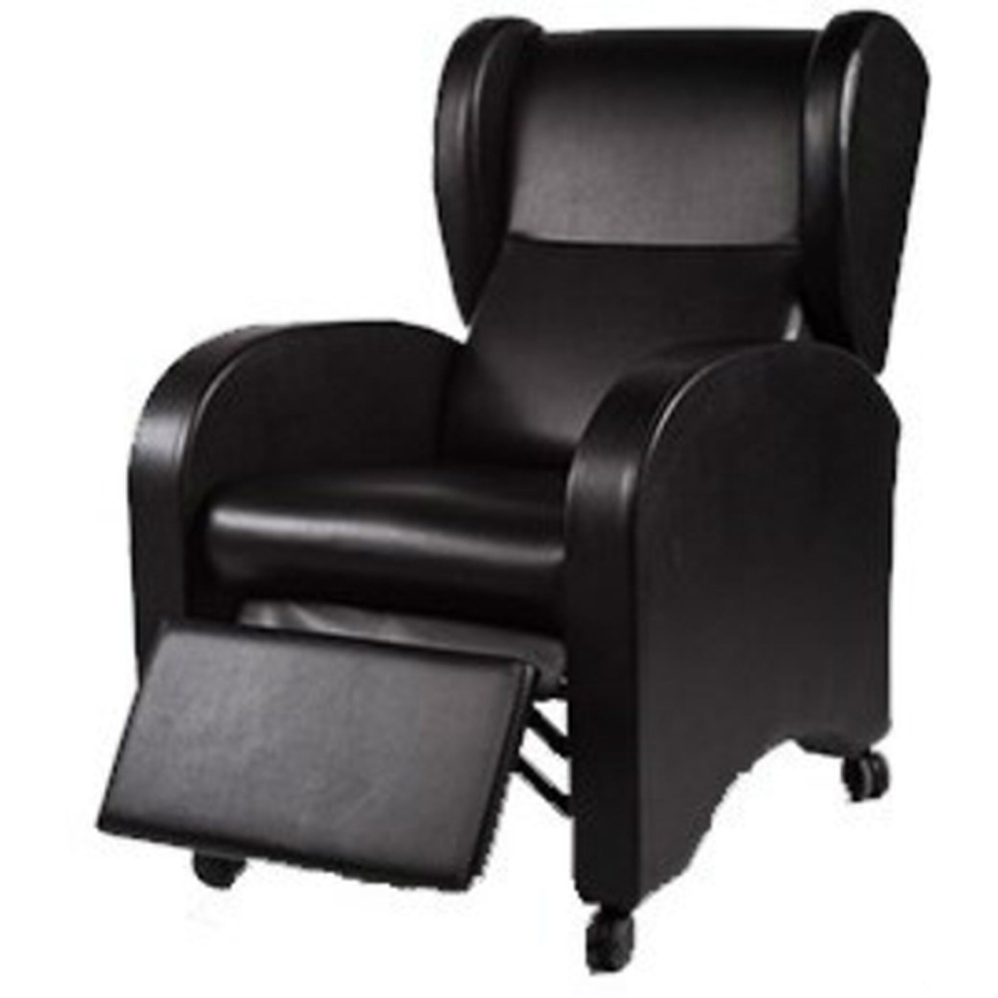 Encosto reclinável com levanta-pés, exercendo uma ligeira pressão nas costas.