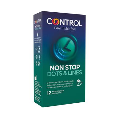 Preservativo Non Stop concebido para quem quer algo mais numa relação. Tem pontos e estrias no lado externo para oferecer sensações mais intensas e é lubrificado internamente com benzocaína para favorecer relações mais prolongadas. Dispositivo Médico.