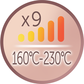 O revestimento de cerâmica avançada oferece um deslizamento 5 vezes mais suave comparado com o revestimento cerâmico convencional. O visor digital integrado permite selecionar entre 6 posições de temperatura até 230 ºC, incluindo a posição Pro+, que modela suavemente o cabelo a 185 ºC para um acabamento mais saudável.