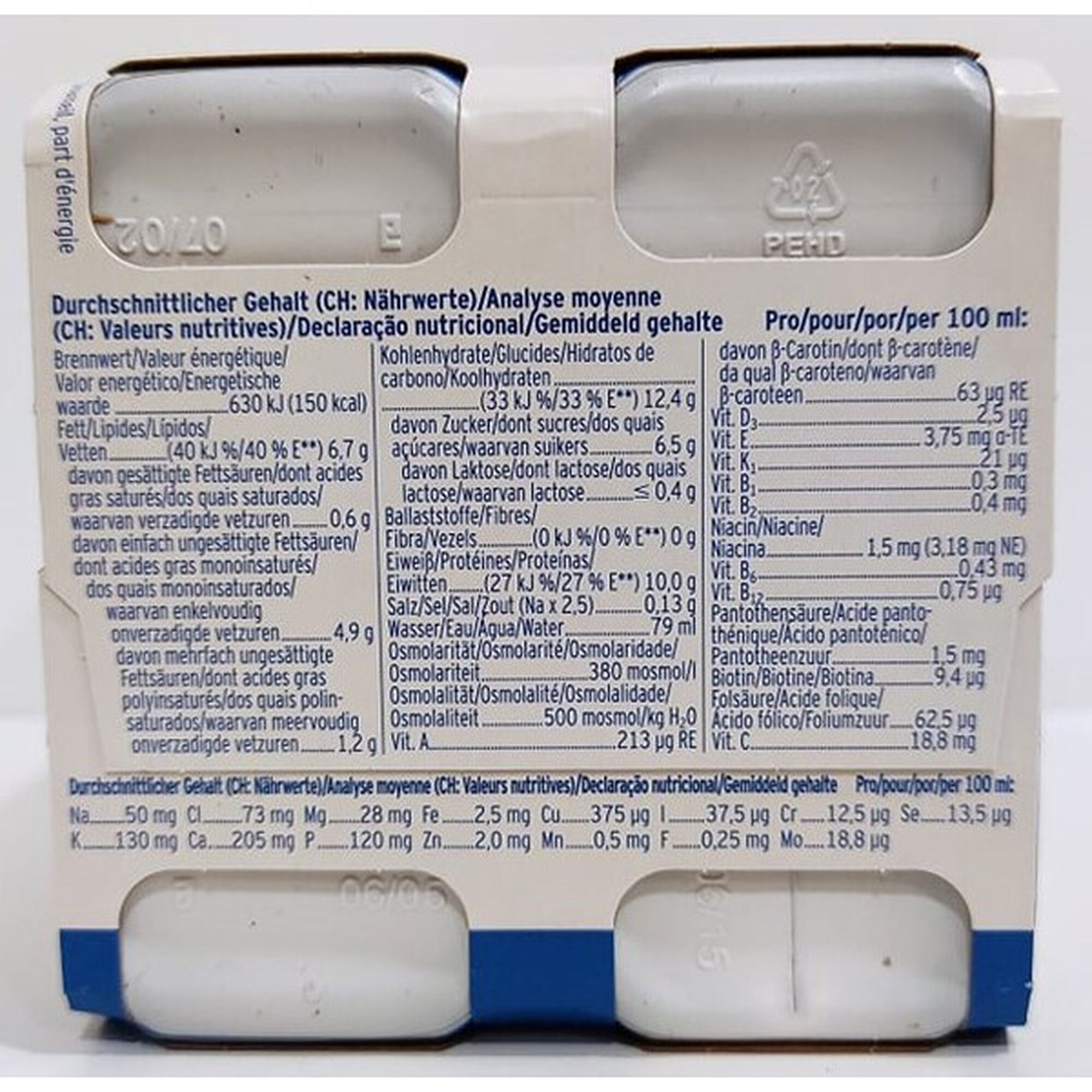 Suplemento nutricional oral completo, hipercalórico (1,5 kcal/ml). Clinicamente isento de lactose. Isento de glúten, de fibra e resíduos. Suplemento alimentar.