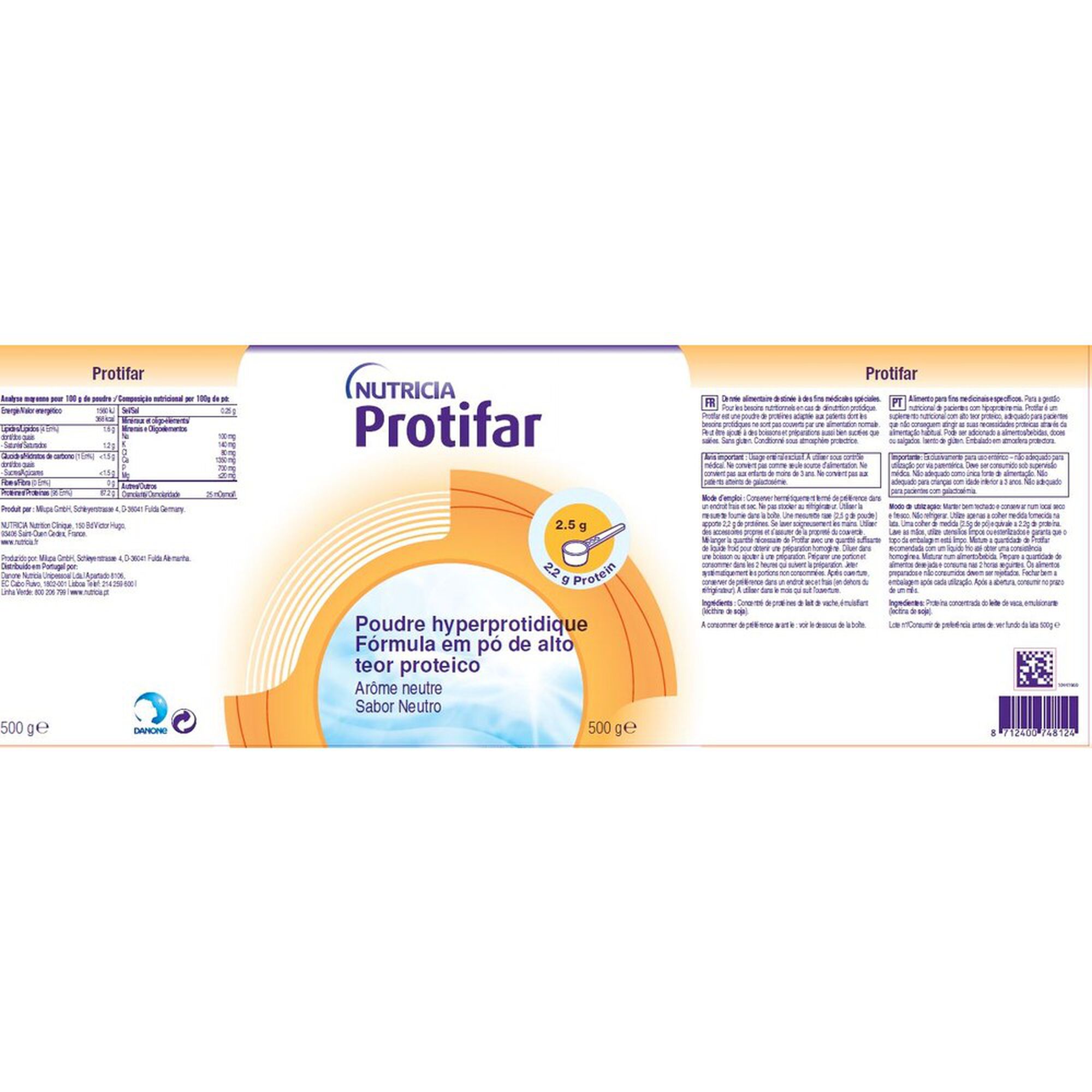 Suplemento nutricional em pó, para enriquecimento proteico da dieta. Contém 80% de caseína e 20% de soroproteínas. Isento de glúten. Indicado para pacientes, com reduzida ingestão proteica ou necessidades proteicas aumentadas, como gestantes, lactantes, crianças, adolescentes, desportistas e idosos. Suplemento alimentar.