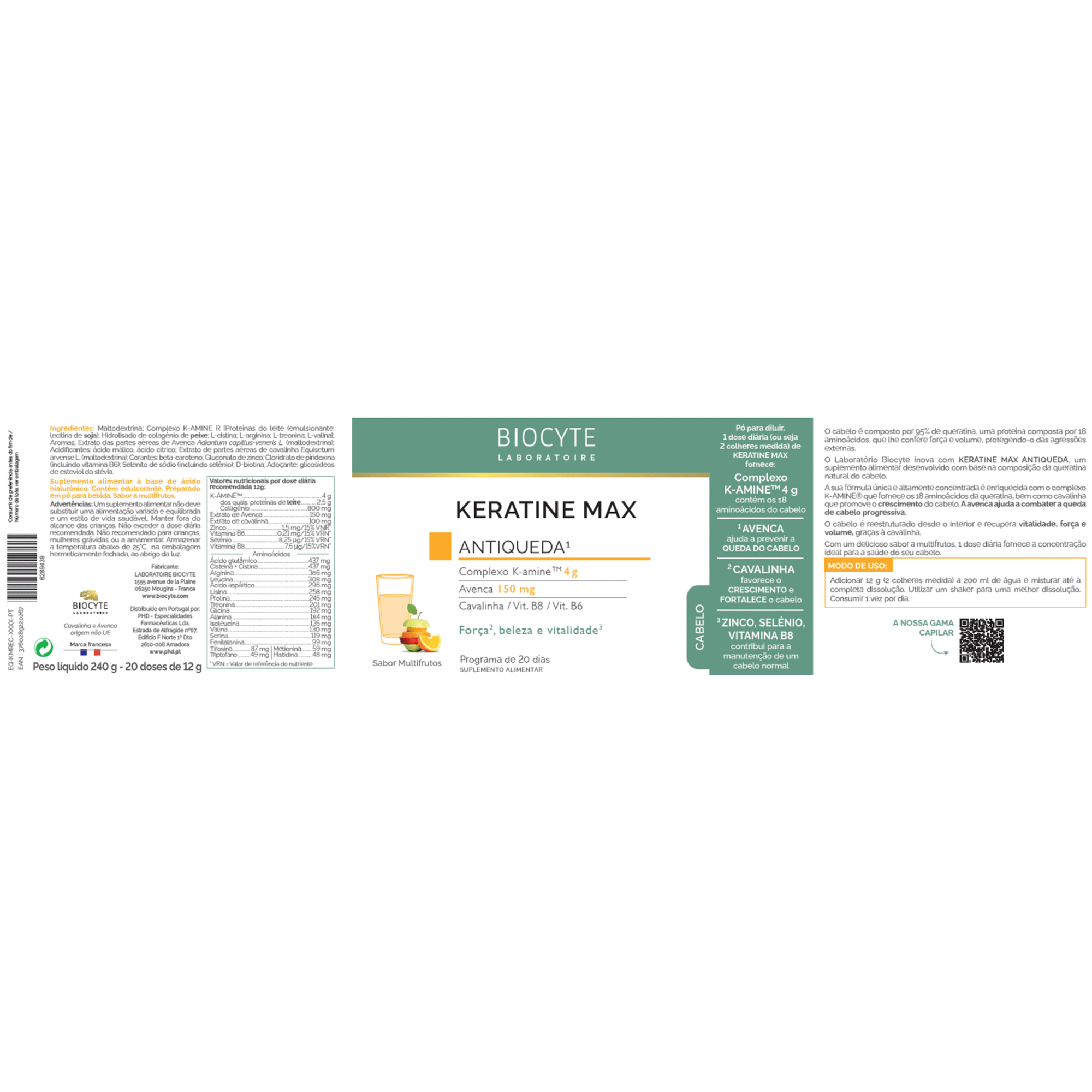 A Queratina em Pó Sabor a Frutas Keratine Max é um delicioso suplemento alimentar bebível com sabor multifrutas altamente concentrado no complexo K-Aminetm que fornece os 18 aminoácidos da queratina, bem como um extrato vegetal que ajuda a combater a queda progressiva do cabelo.