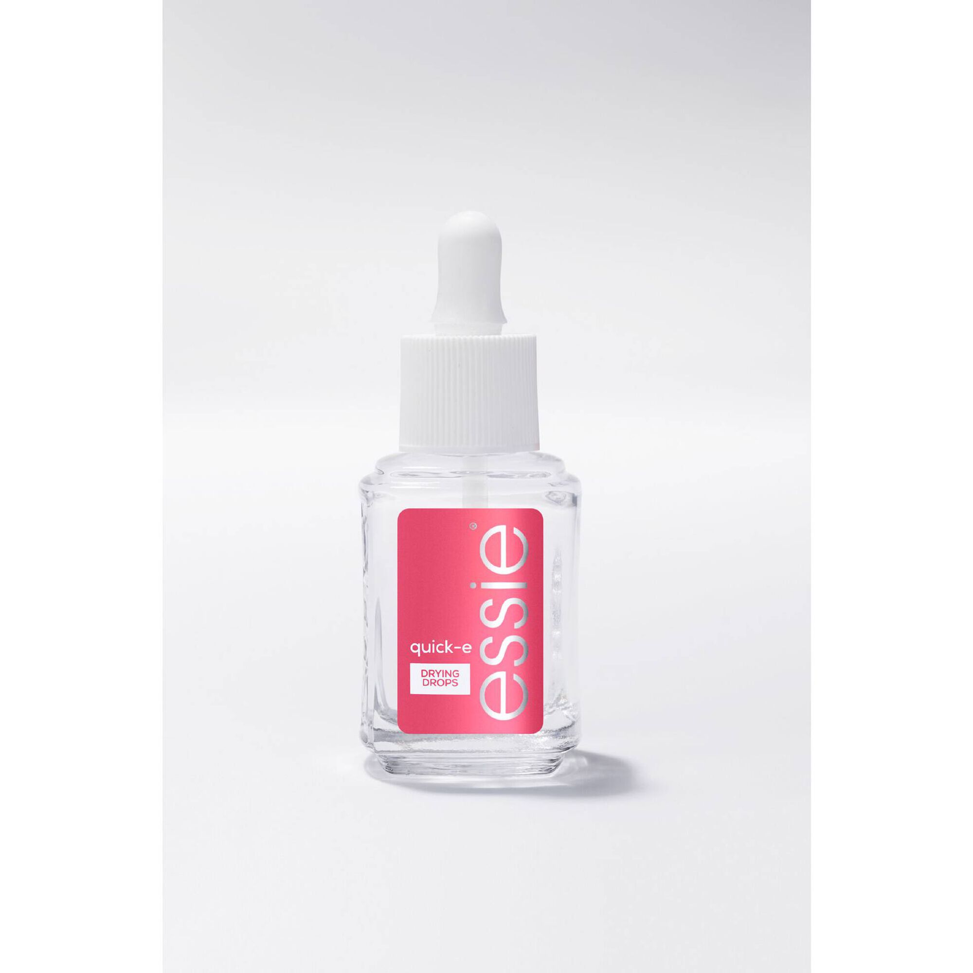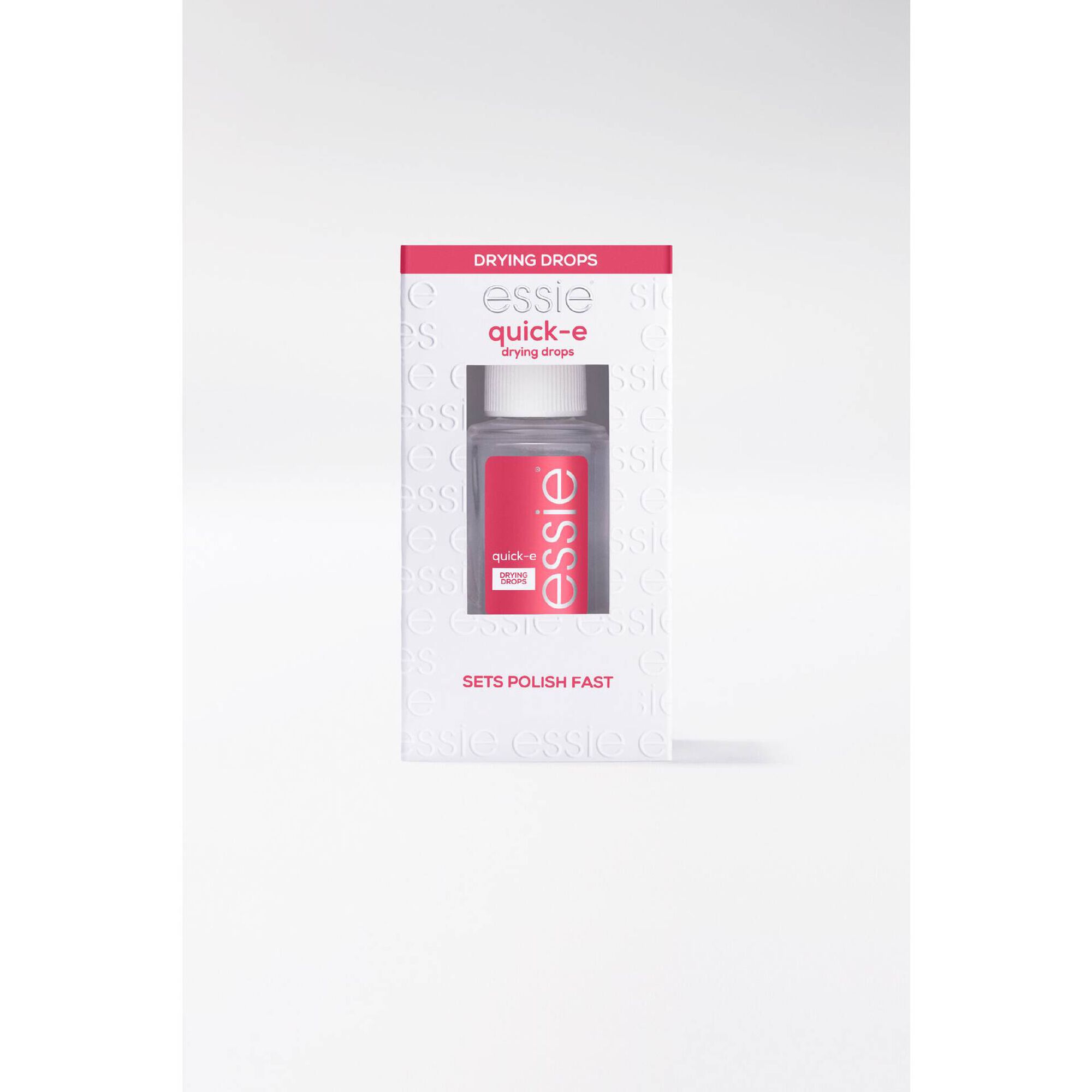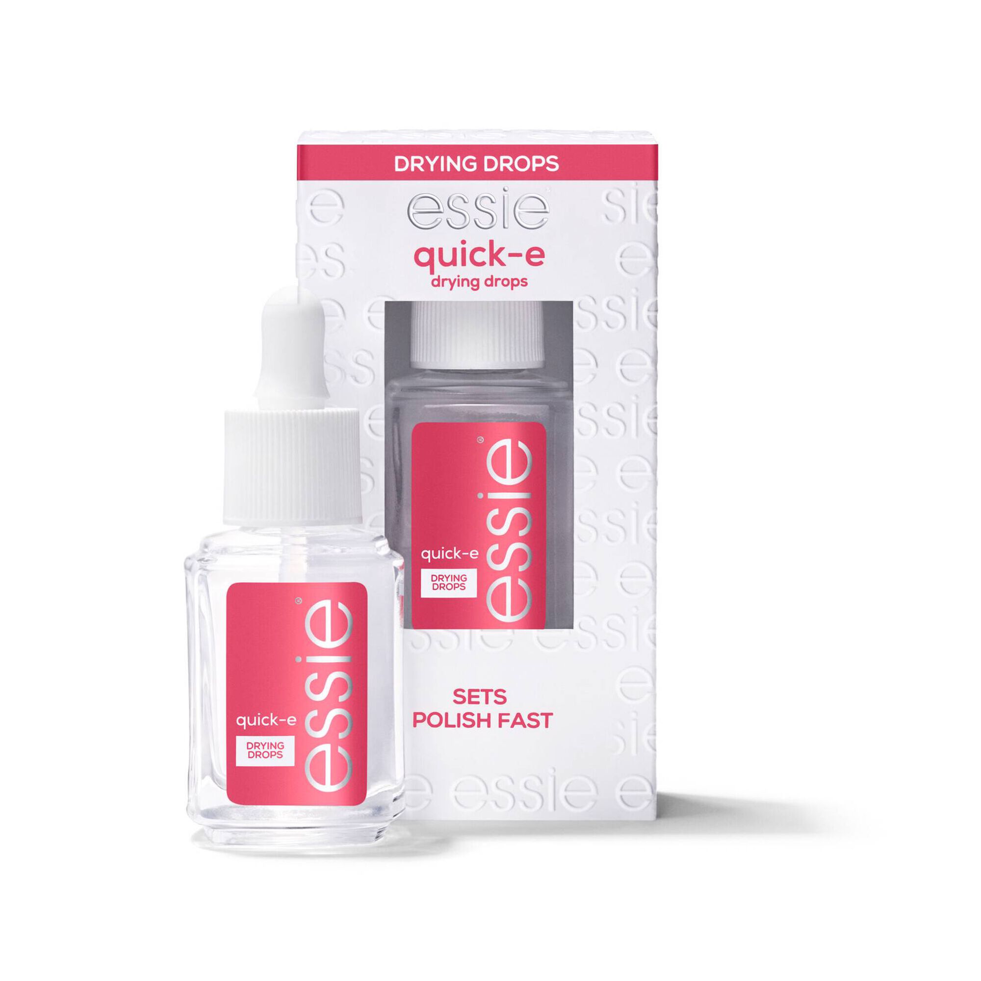 Dê um toque final à sua manicura com “quick-e”. Este secador seca o verniz rapidamente e faz com que a sua manicura dure mais tempo. Aplique uma gota de quick-e em cada unha acabada de polir.