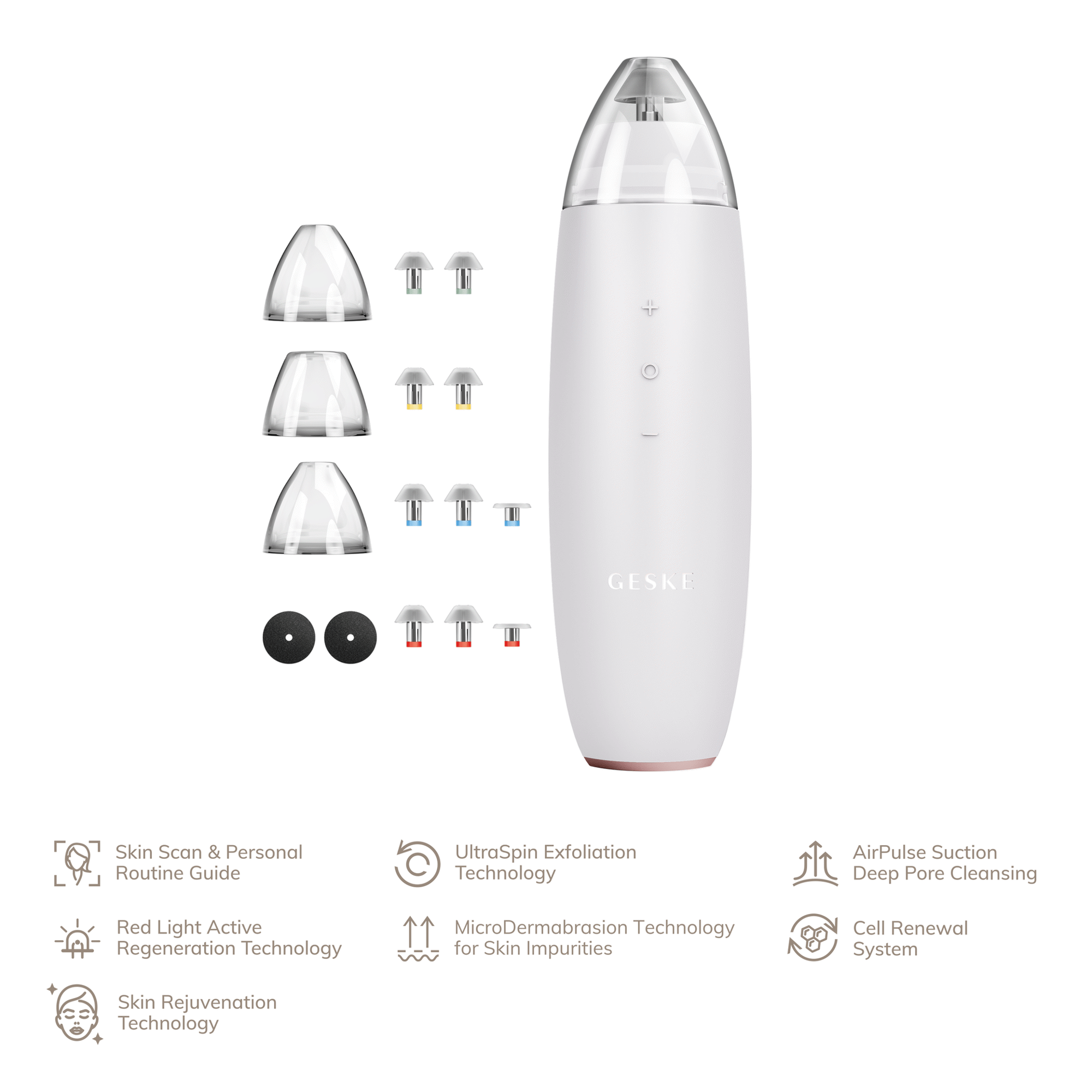 A AirPulse Suction Deep Pore Cleansing extrai suavemente, através de jatos de ar direcionados, resíduos de maquilhagem, óleos, pele morta e, claro, pontos negros e espinhas. Para complementar, a MicroDermabrasion Technology for Skin Impurities fornece uma sessão de cuidado com a pele personalizável específica para a tua pele sem a prejudicar ou causar infeção. Para manteres a tua pele livre de manchas, recomendamos utilizar a Red Light Active Regeneration Technology.
