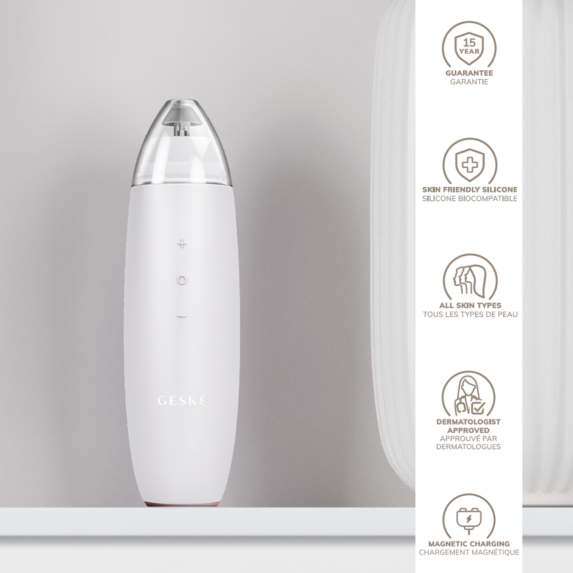 - Desliga o dispositivo ao premir o botão de ligar durante 2 segundos. Agora aplica um soro ou hidratante GESKE na área alvo para acalmar a pele. Limpa o dispositivo com um produto de limpeza de dispositivo GESKE após cada utilização.