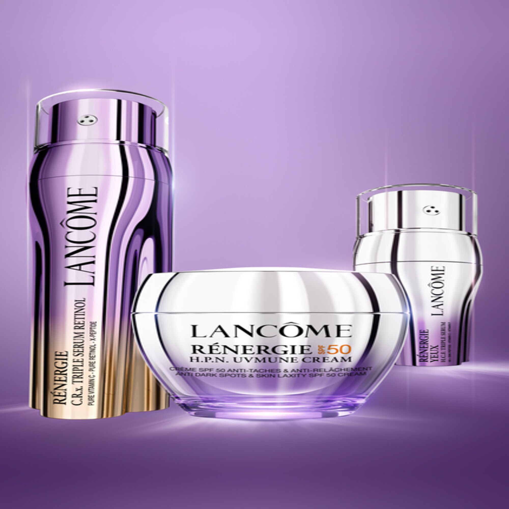 Descubra o creme Rénergie H.P.N. UVMUNE SPF50, de Lancôme, desenvolvido para prevenir rugas e manchas escuras, graças à elevada proteção SPF50 contra os raios UV e aos poderosos péptidos anti-idade. A sua fórmula atua contra os raios UVA longos, os principais responsáveis dos sinais do fotoenvelhecimento, como o aparecimento de manchas, perda de firmeza e rídulas.