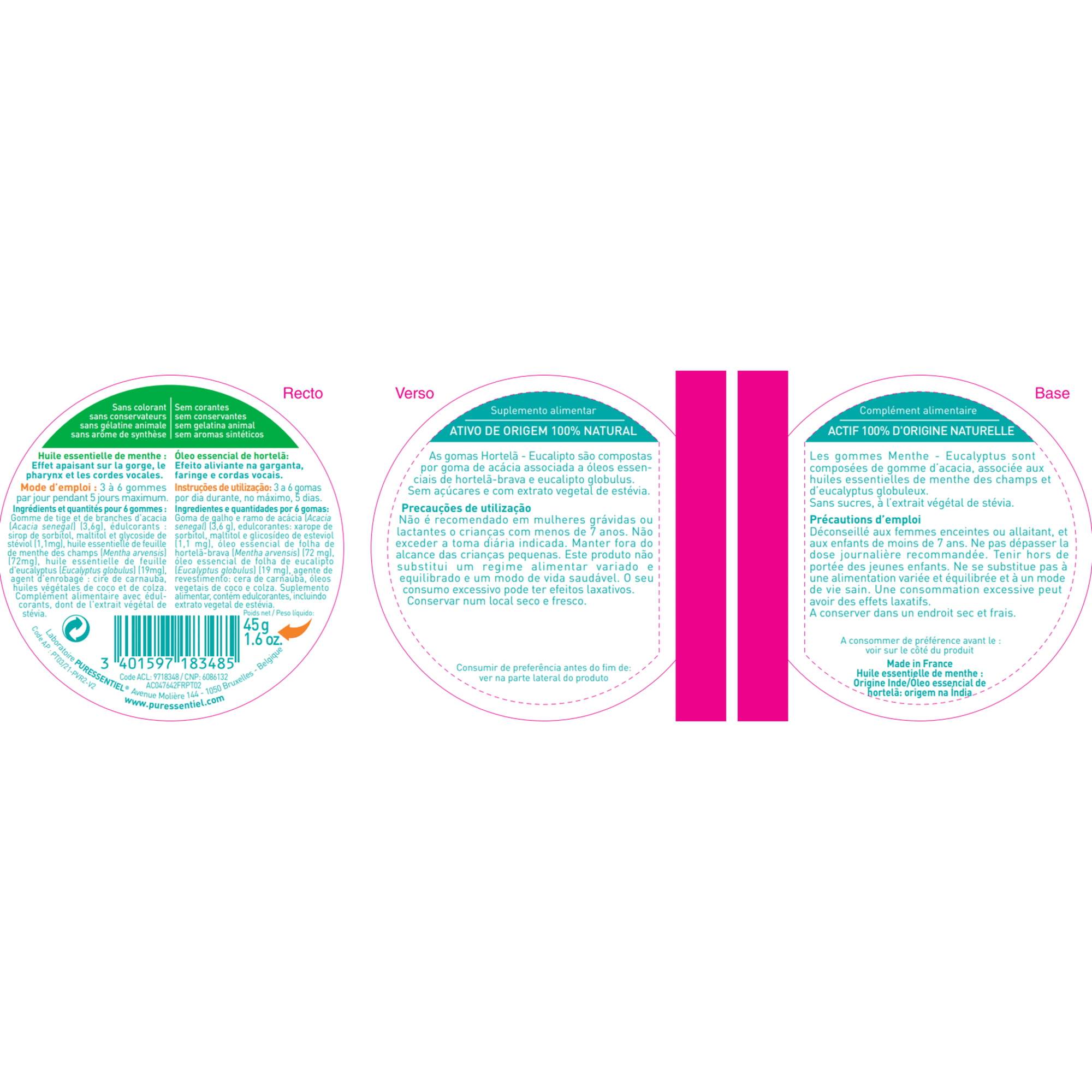 As Gomas Hortelã-Eucalipto Respiratório contém óleo essencial de hortelã com um efeito calmante na garganta, na faringe e nas cordas vocais.