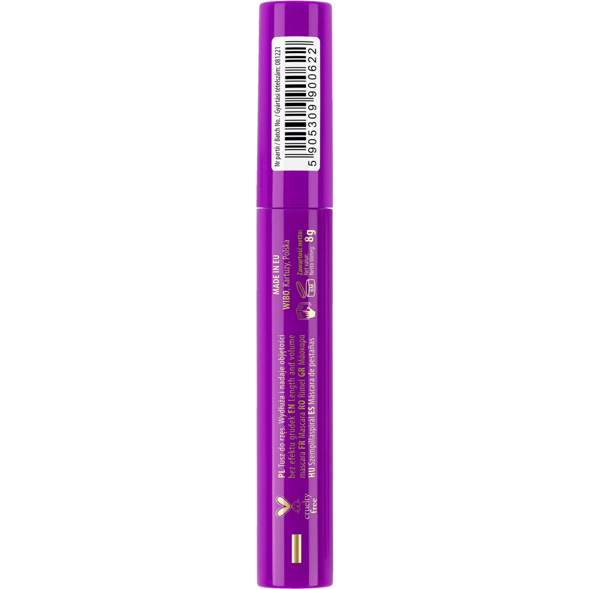 Coloca o pincel em forma de ampulheta na raiz das pestanas e dá-lhes forma com movimentos para trás e para a frente para um volume extra. Reveste as pestanas inferiores para um comprimento extra.Manter fora do alcance das crianças. Não aplicar na pele danificada ou irritada. Se sentir algum desconforto ou irritação, interromper a utilização. Não aplicar nos olhos. Em caso de contacto acidental com os olhos, lavar abundantemente com água. Conservar num local fresco e seco.