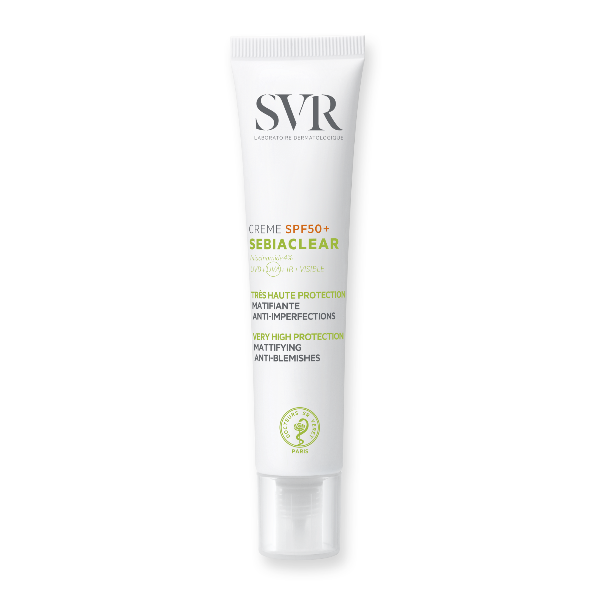 O Protetor Solar Pele Oleosa SEBIACLEAR SPF50 é um 2 em 1 para o rosto: proteção solar muito elevada e cuidado matificante da pele mista, oleosa com tendência acneica.