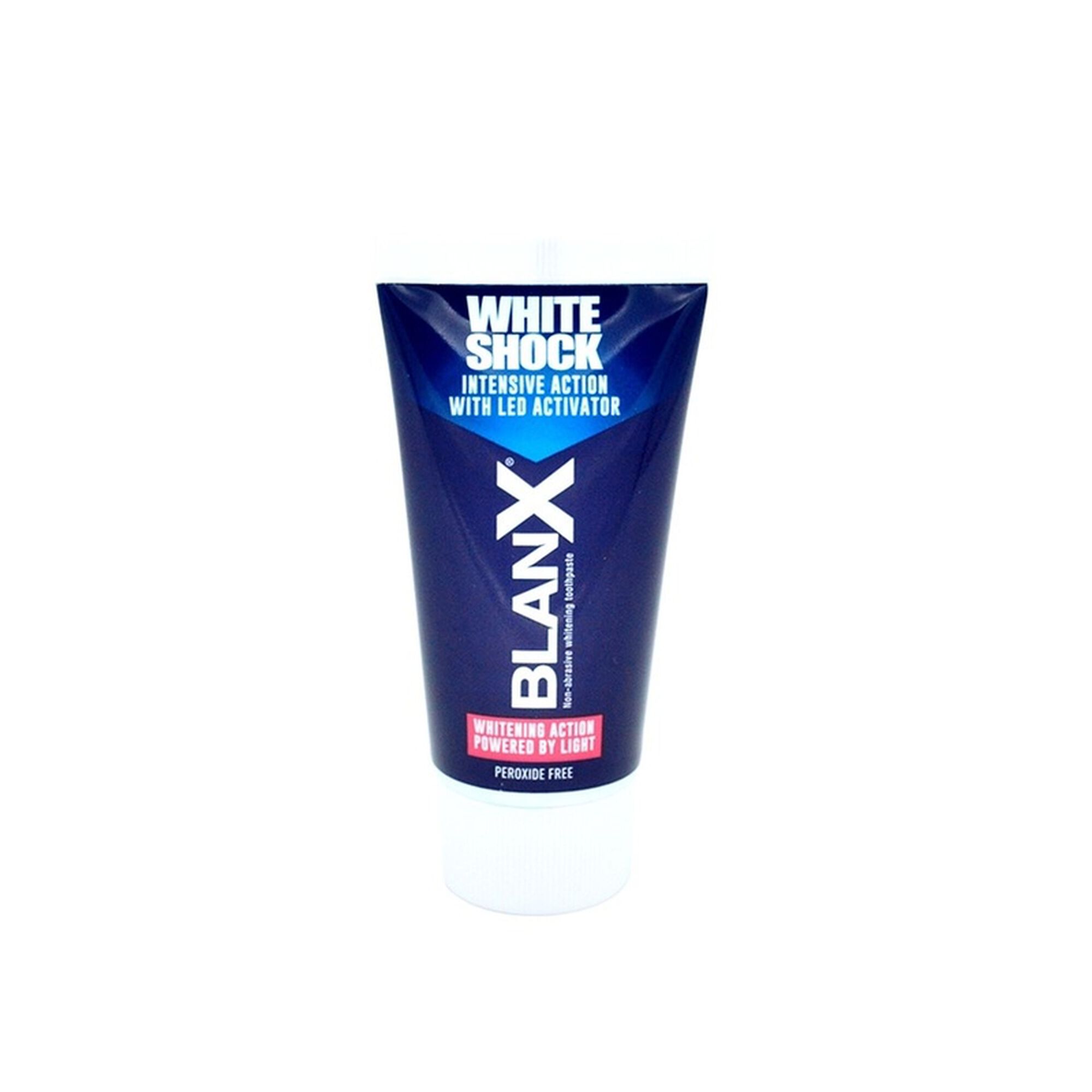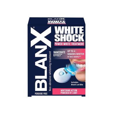 A ação branqueadora é ativada através do ingrediente único da pasta de dentes BlanX White Shock - ActiluX. Este é depositado na superfície dos dentes ao escovar e permanece ativo durante todo o dia. Este tratamento vem com uma mordida LED que deve ser utilizada após a aplicação da pasta de dentes durante 1 minuto para iluminar e ativar a ação branqueadora do ingrediente ActiluX.