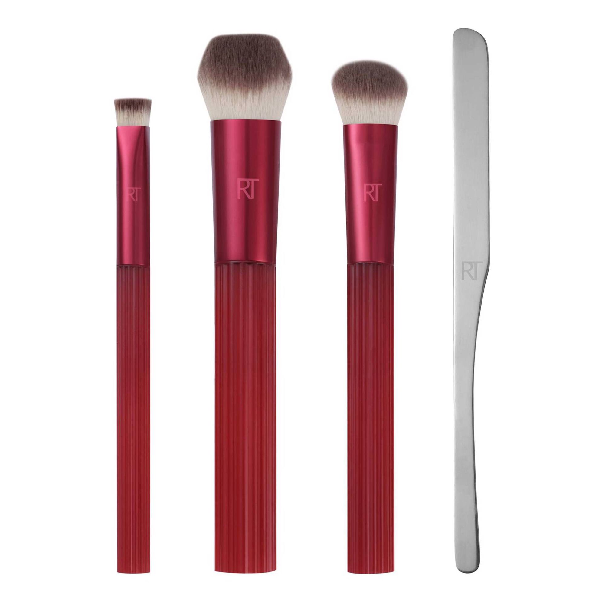 O Conjunto Real Techniques Solar Power Golden Hour Glow inclui 3 pincéis de rosto com cerdas densas e uma espátula de maquilhagem para corrigir, cobrir e iluminar para obter uma tez uniforme com brilho.