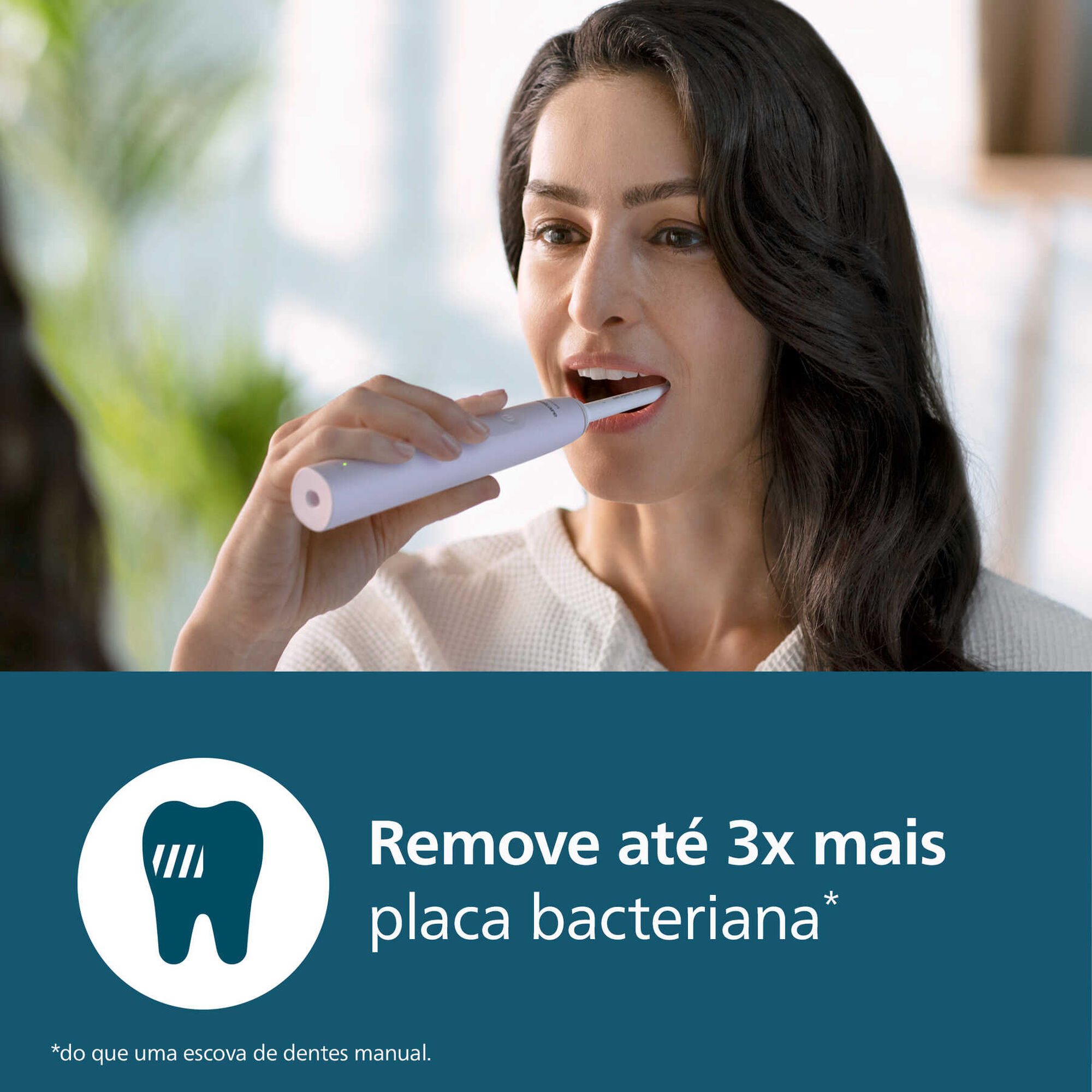 Este modelo conta com um modo de limpeza e um nível de intensidade, garantindo uma escovagem suave, porém eficaz. A tecnologia da Philips Sonicare ajuda a remover mais placa bacteriana do que uma escova manual comum, promovendo uma limpeza profunda e delicada para dentes e gengivas.