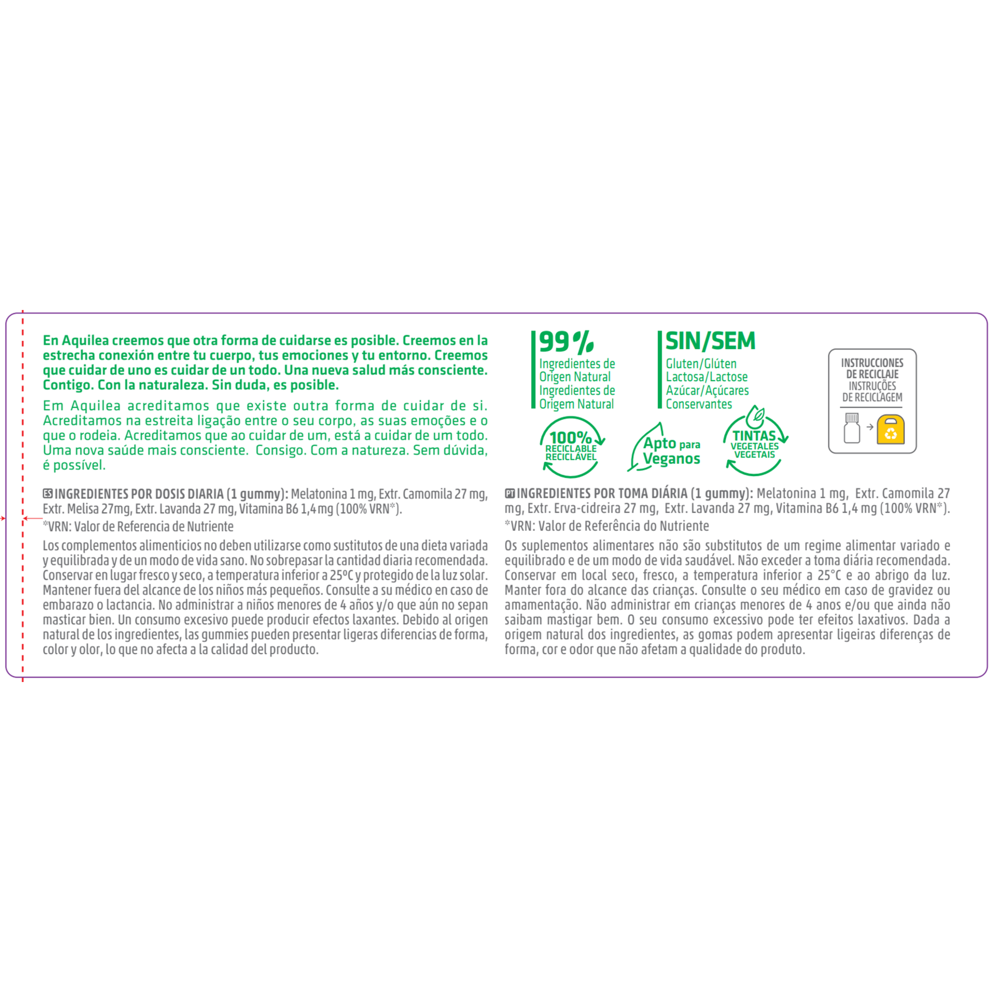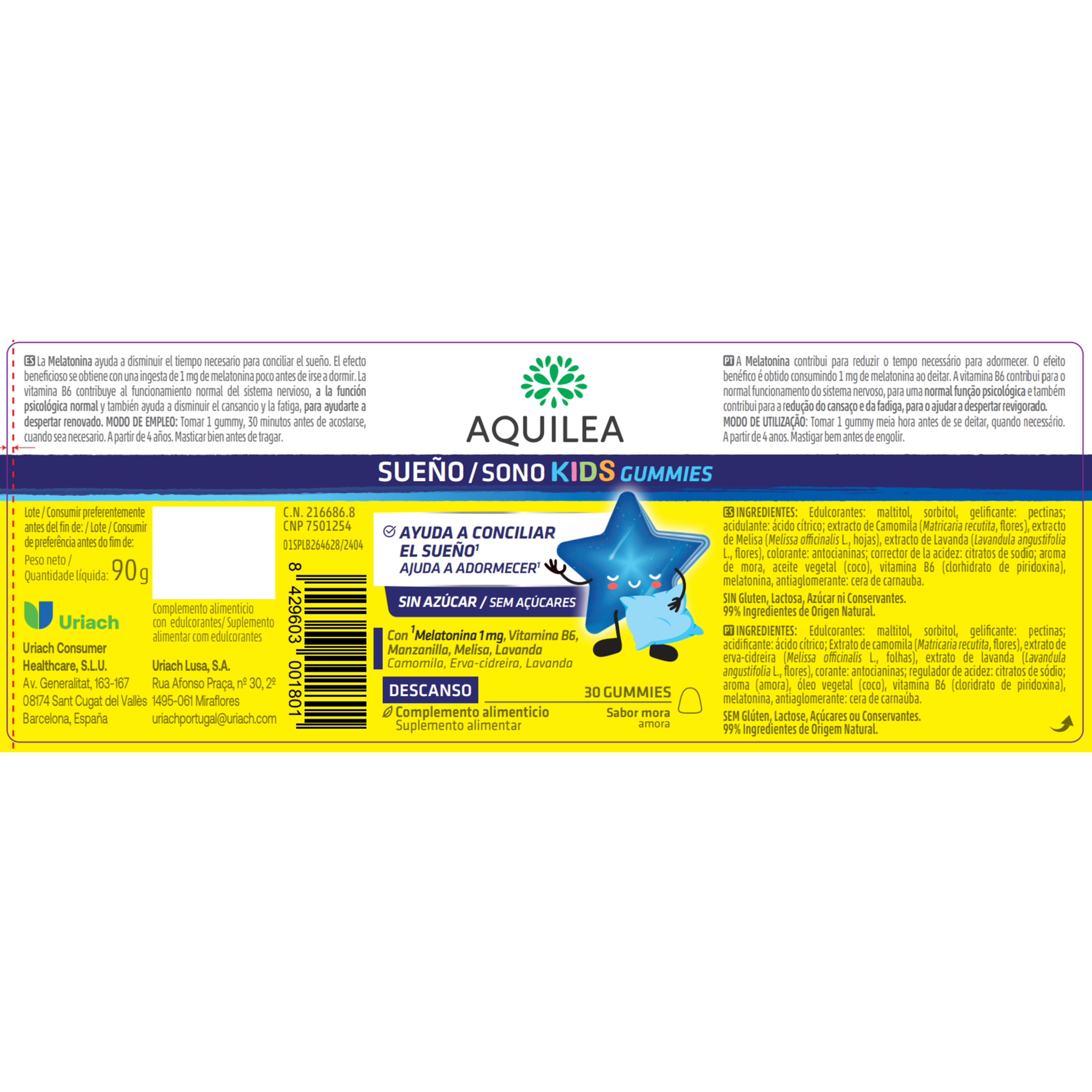 Aquilea Sono Kids Gomas foi projetado no formato de goma, sem açúcar, que é tomada 30 minutos antes de dormir.
