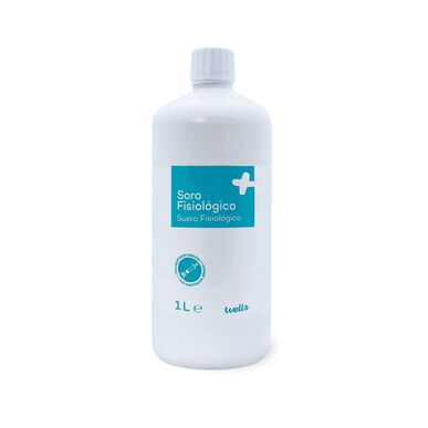 Soro Fisiológico em formato de 1 litro com adaptador para utilização com seringas.