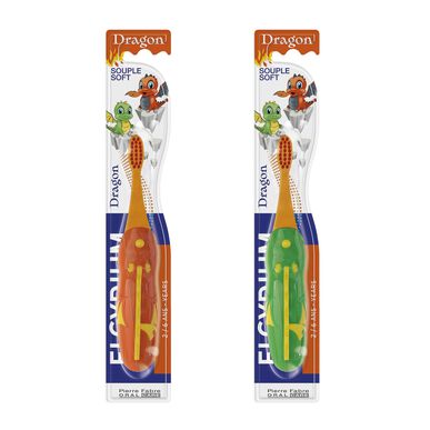 Pegue no seu dragão e desfrute deste momento mágico. Especialmente concebida para crianças dos 2 aos 6 anos, a sua cabeça pequena e as cerdas arredondadas permitem uma limpeza suave dos dentes de leite e das gengivas.