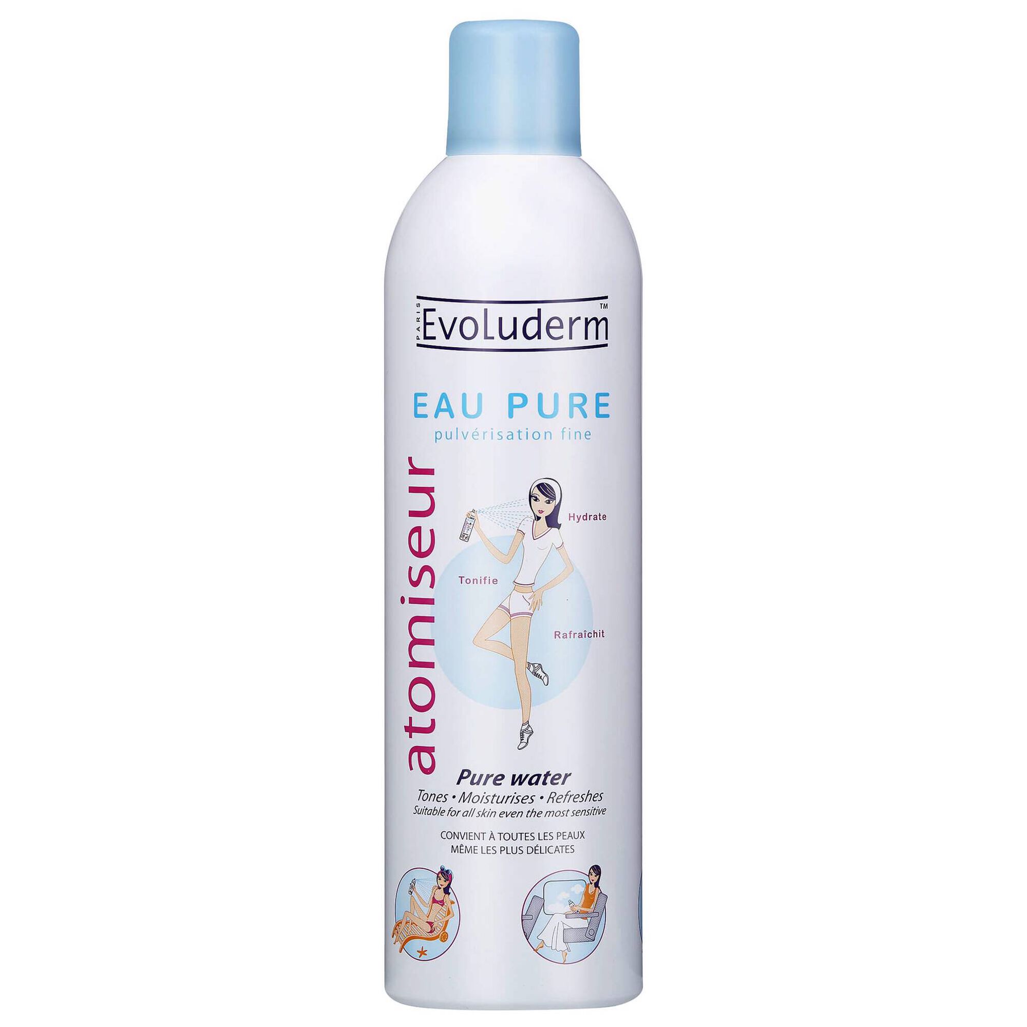 O spray de água refrescante Eau Pure da Evoluderm hidrata e tonifica a pele para proporcionar a toda a família um momento de intenso frescor.