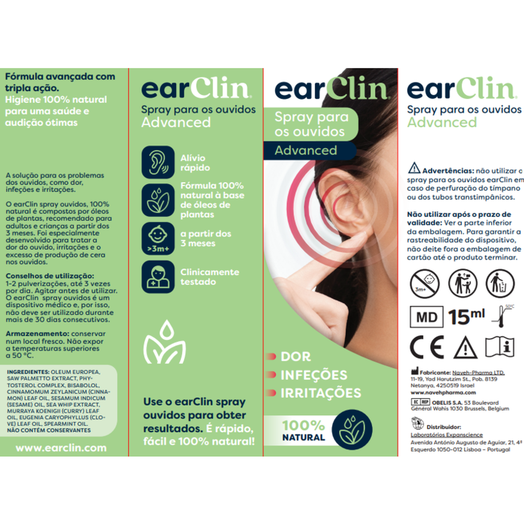 O dispositivo médico EarClin Spray Auricular é 100% natural, composto por óleos de plantas.