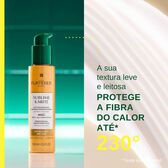 A sua textura delicadamente perfumada, leve e leitosa, protege a fibra do calor de até 230 °C, sem pesar.