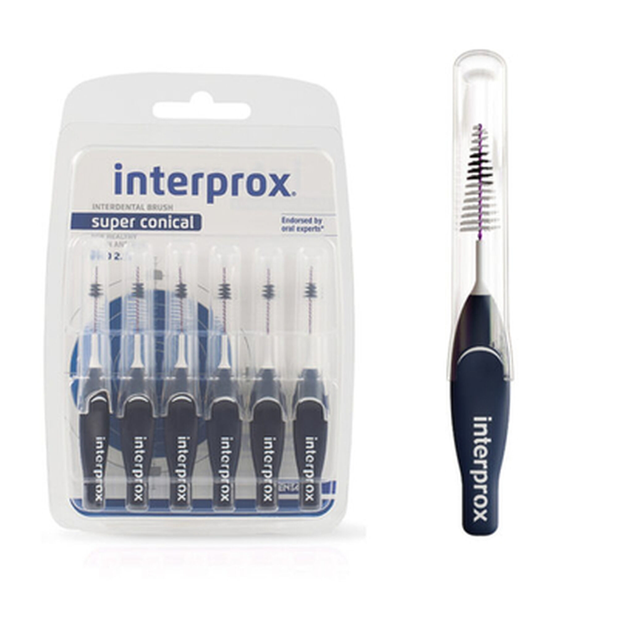 O Interprox® Super Conical foi especialmente desenvolvido para remover o biofilme oral (placa bacteriana) dos espaços interdentais. Sua cabeça cónica adapta-se aos espaços médios, com um tamanho PHD de 2,0 para uma limpeza eficaz.