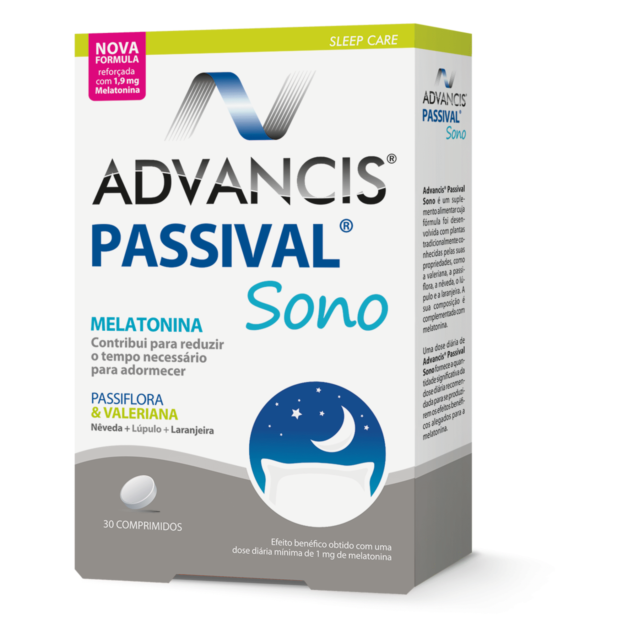 ADVANCIS® PASSIVAL® SONO é um suplemento alimentar em comprimidos à base de melatonina, que tem como principal função regular o nosso relógio biológico, contribuindo para reduzir o tempo necessário para adormecer. A melatonina promove um sono mais natural e de melhor qualidade, com a vantagem de não criar habituação e de promover um despertar revigorado.