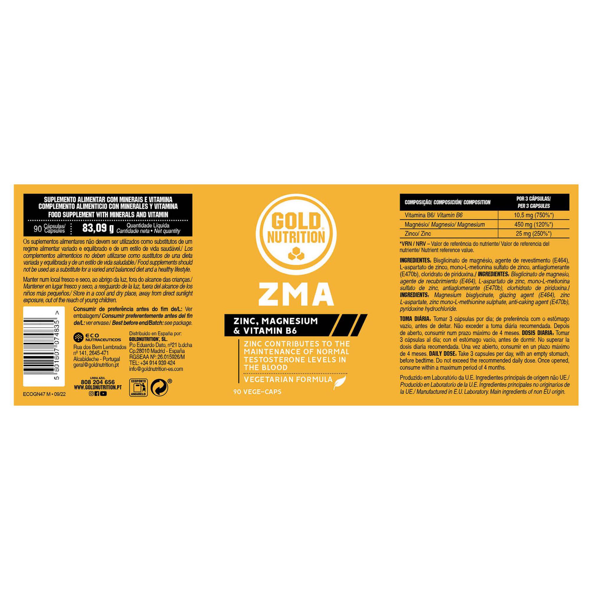 Suplemento alimentar de fórmula vitamínica e mineral que combina fontes altamente biodisponíveis de Magnésio, Zinco e Vitamina B6. O Magnésio tem um papel no normal funcionamento muscular e do sistema nervoso. O Zinco auxilia na manutenção de níveis de testosterona no sangue e na síntese normal das proteínas. A Vitamina B6 contribui para o normal metabolismo das proteínas e ajuda na regulação da atividade hormonal.
