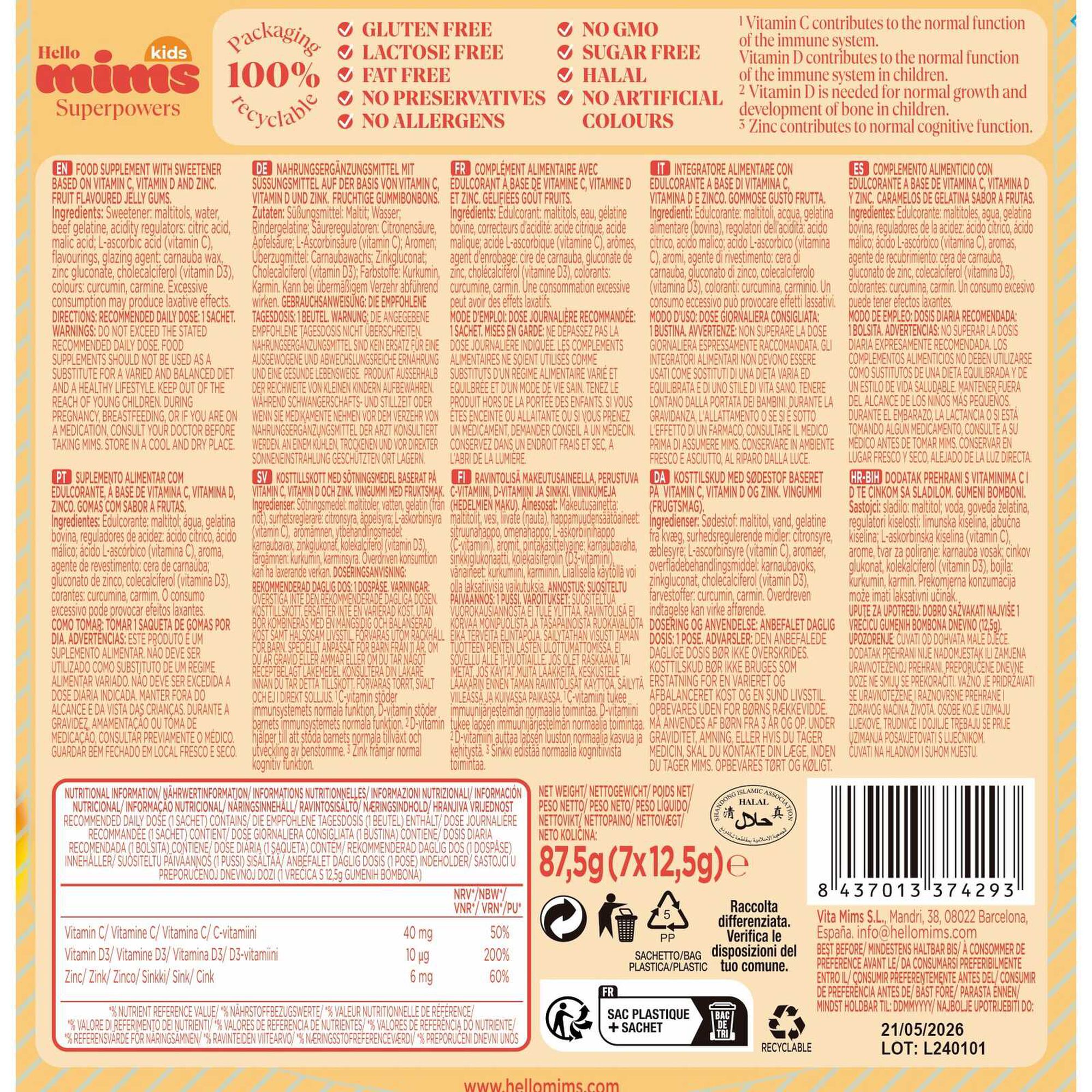 O Suplemento Alimentar Sistema Imunitário Kids é um suplemento alimentar à base de gomas com vitaminas e sem açúcar para melhorar o sistema imunitário.