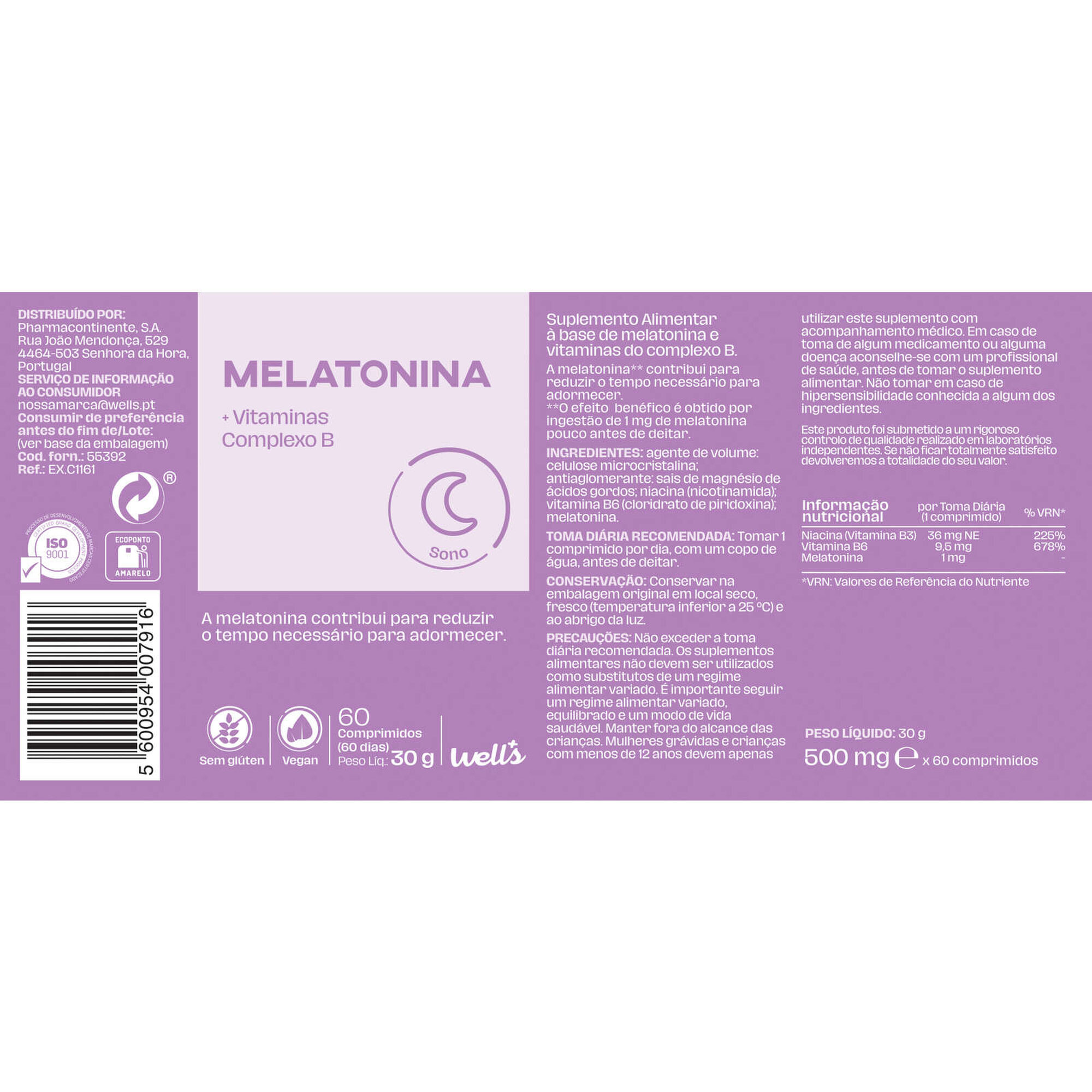 Suplemento alimentar à base de melatonina e vitaminas do complexo B.