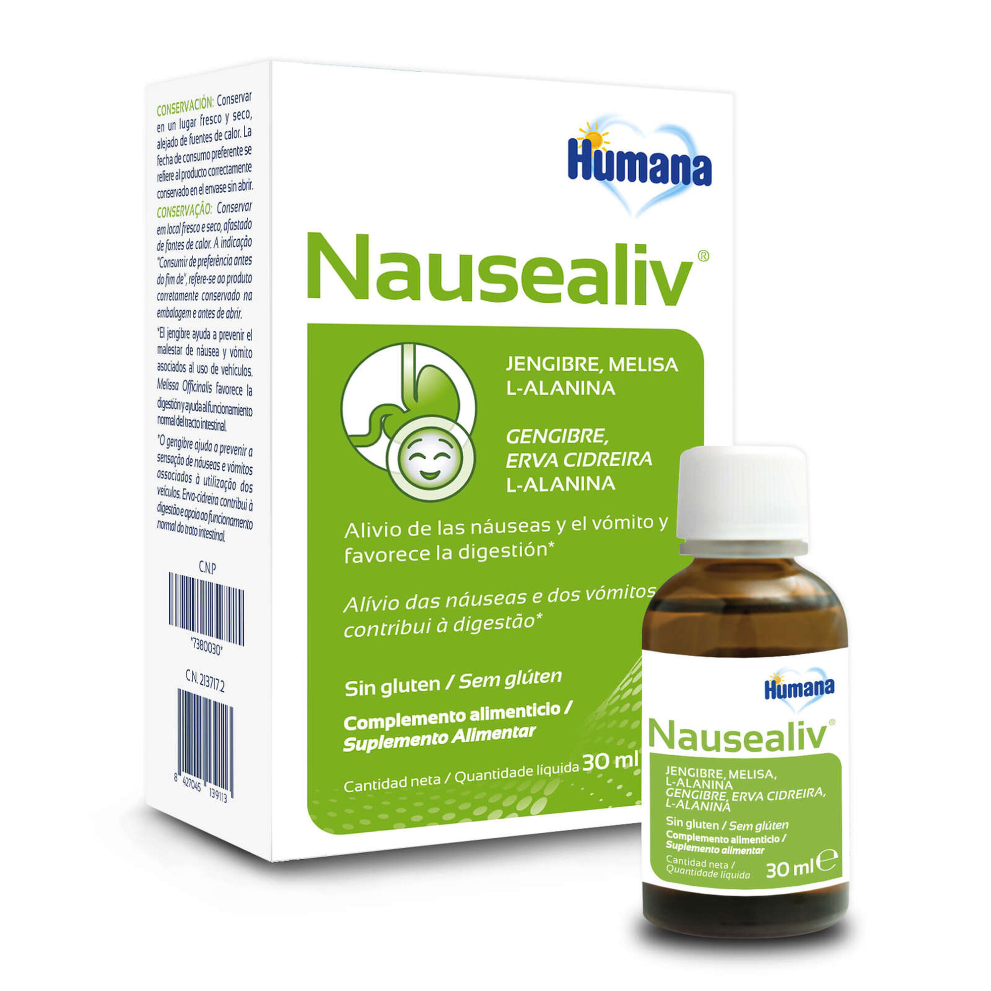 O Suplemento Alívio de Náuseas e Vómitos é um suplemento alimentar com gengibre, erva-cidreira, L-alanina e vitaminas B que ajuda ao alivio das náuseas e dos vómitos.