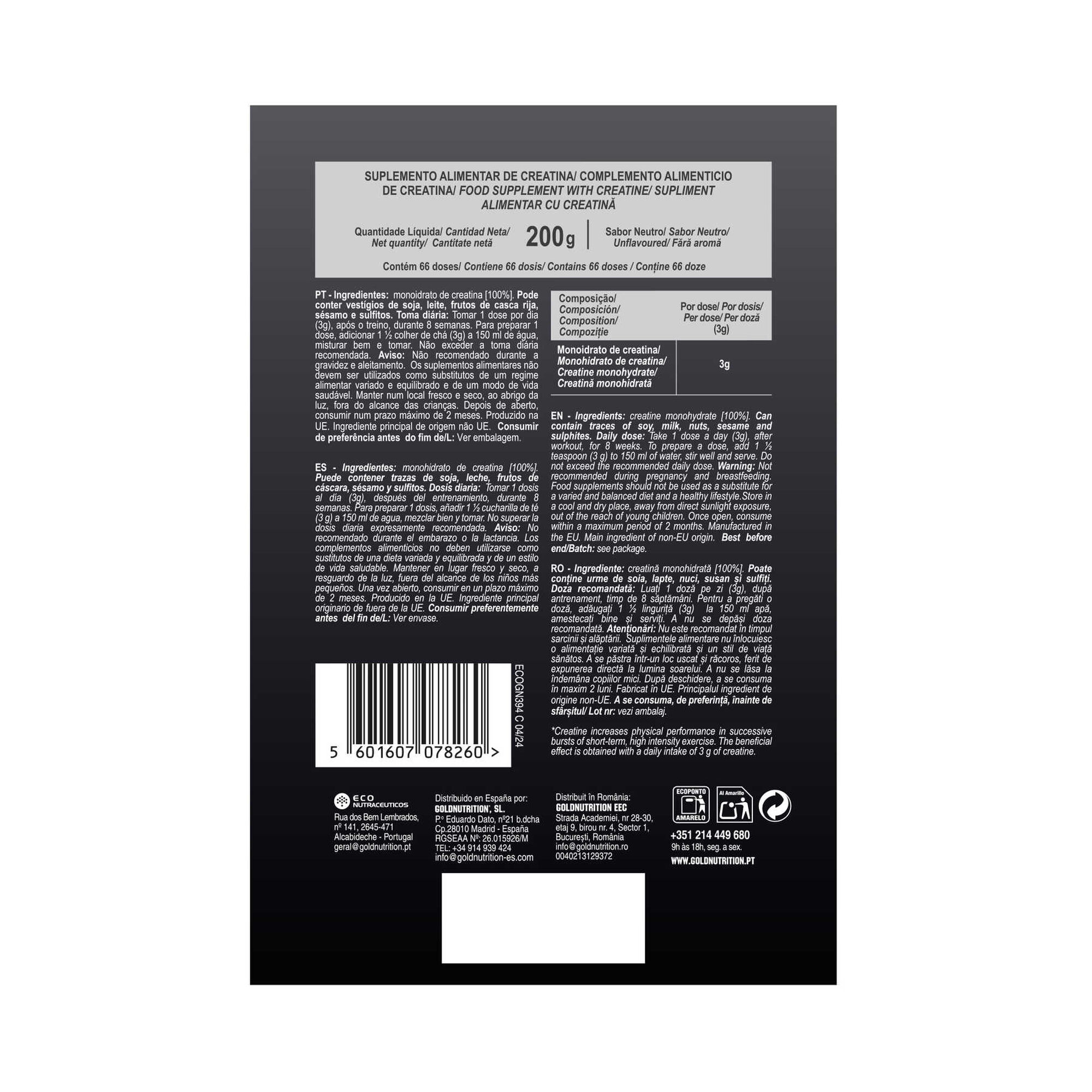 O Suplemento Creatina Monohidratada sem Sabor da Gold Nutrition é talvez o suplemento alimentar mais estudado até hoje na nutrição desportiva e demonstrou aumentar a força, a potência e o desempenho físico em diferentes modalidades desportivas.