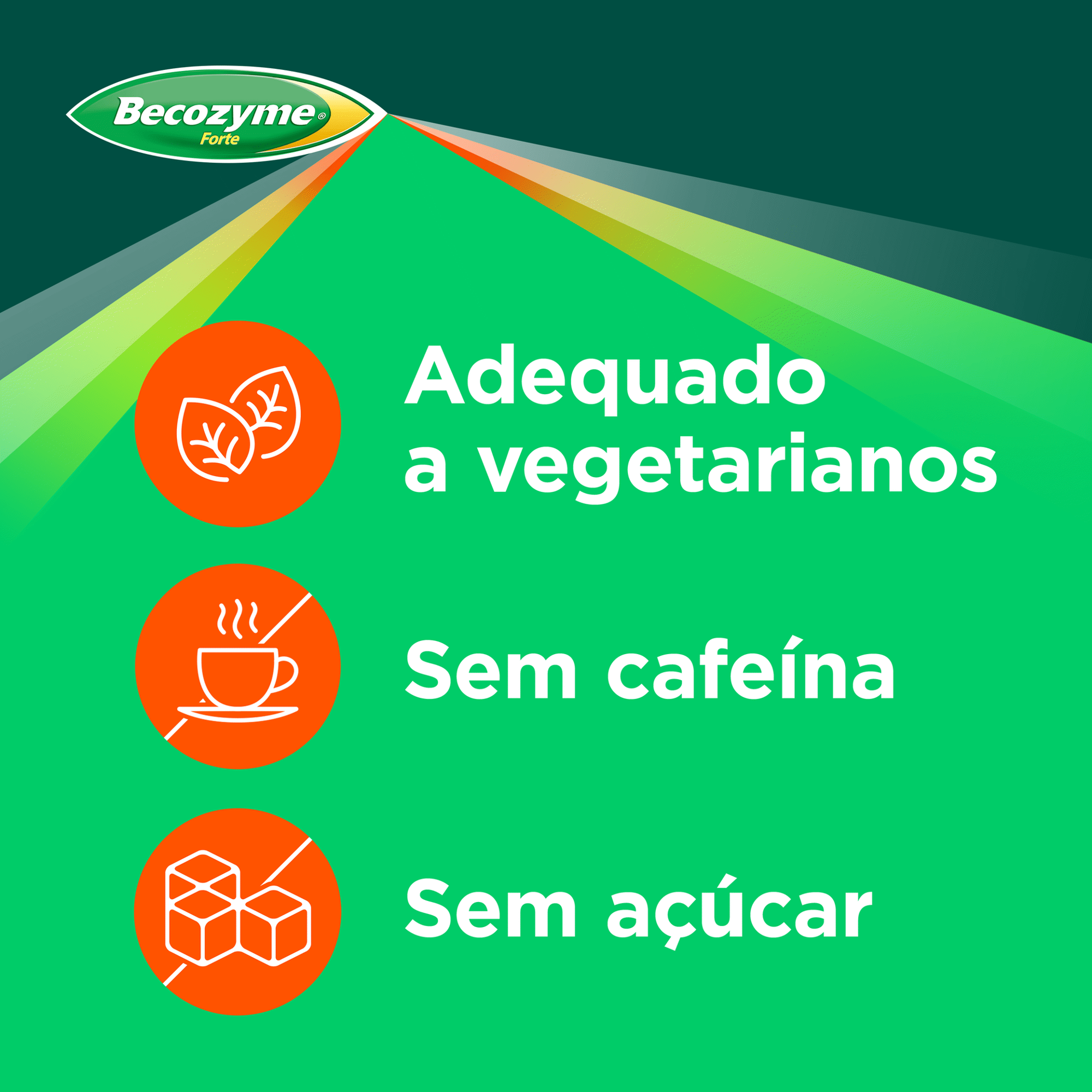 É um Suplemento alimentar diário, sem açúcar e sem estimulantes artificiais, que contém uma combinação específica de vitaminas do complexo B, Vitamina C, Cálcio, Magnésio e Zinco. A ação conjunta destes nutrientes essenciais é vital para o funcionamento saudável dos sistemas nervoso e imunitário e para a resposta muscular, contribuindo para um bom desempenho mental e físico.