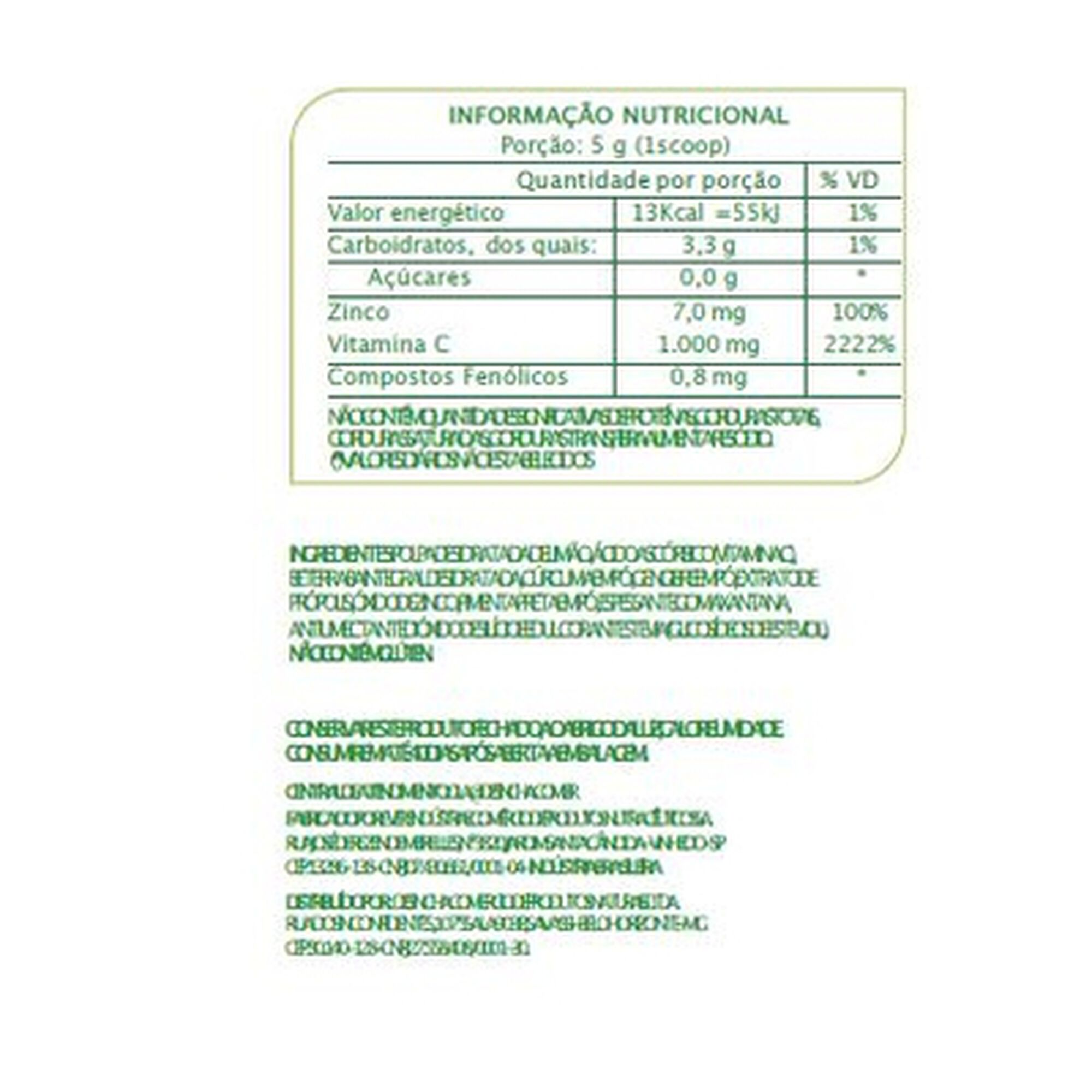 Suplemento alimentar em pó com vitamina C, zinco e compostos fenólicos do própolis em pó. suplemento alimentar