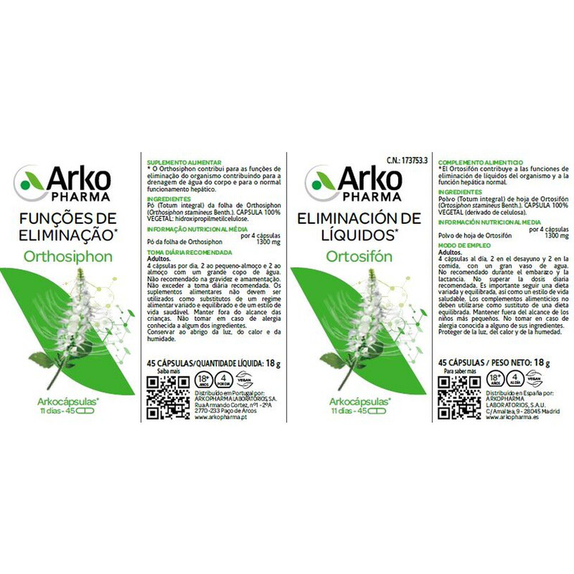 Arkocápsulas Orthosiphon é um suplemento alimentar que contribui para as funções de eliminação do organismo (eliminação de líquidos) e para a normal função hepática.