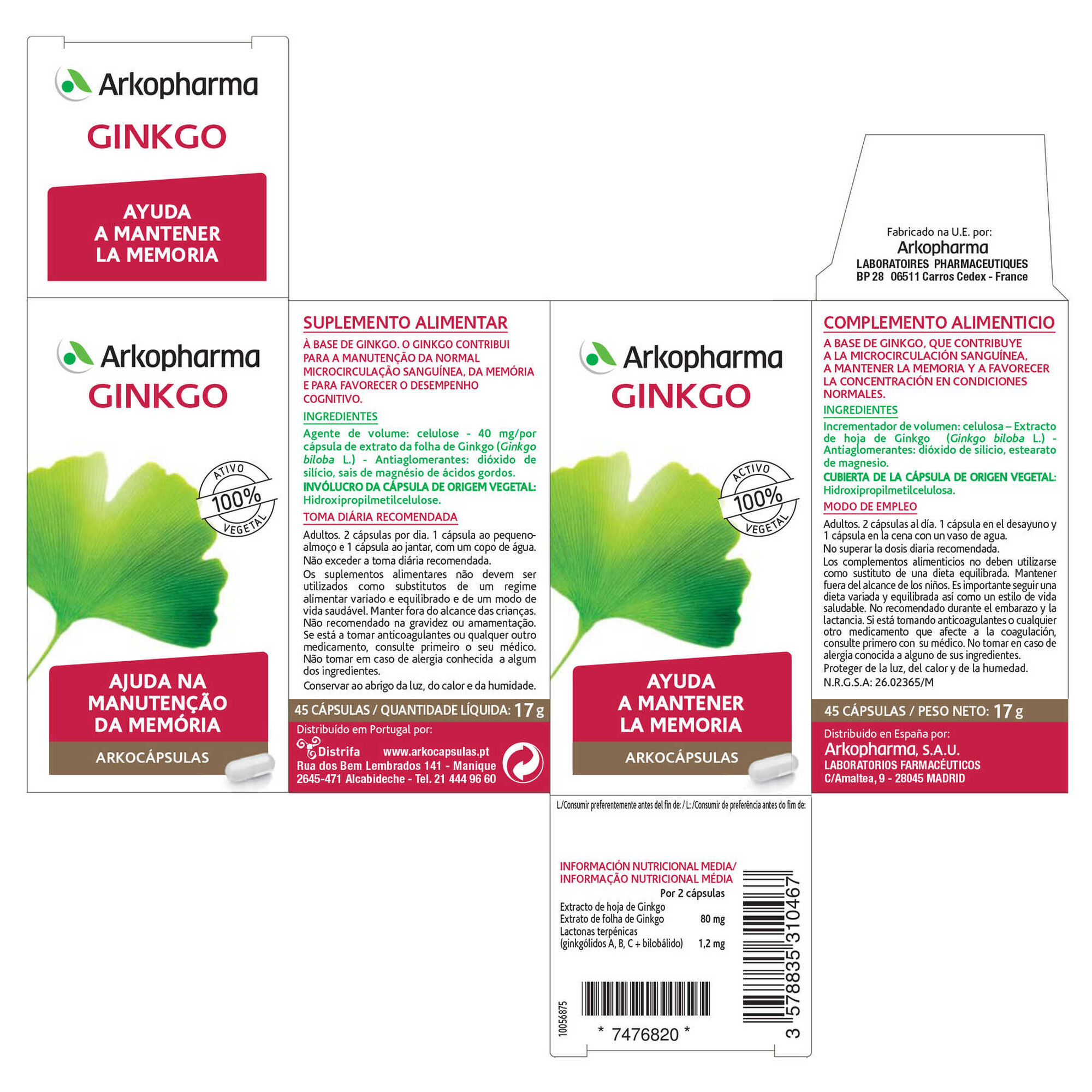 Suplemento alimentar à base de Ginkgo. Na população em geral o Ginkgo contribui para a manutenção da normal microcirculação sanguínea, da memória e para favorecer o desempenho cognitivo.