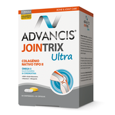 ADVANCIS® JOINTRIX ULTRA é um Suplemento Alimentar com uma fórmula especialmente concebida para promover o bem-estar das cartilagens e a saúde articular. Conta com substâncias criteriosamente selecionadas como a glucosamina, condroitina, metilsulfonilmetano (MSM), colagénio, ácido hialurónico, silício, quercetina, vitamina C e manganês. A fórmula foi otimizada com ácidos gordos ómega-3, provenientes de óleos de peixe.