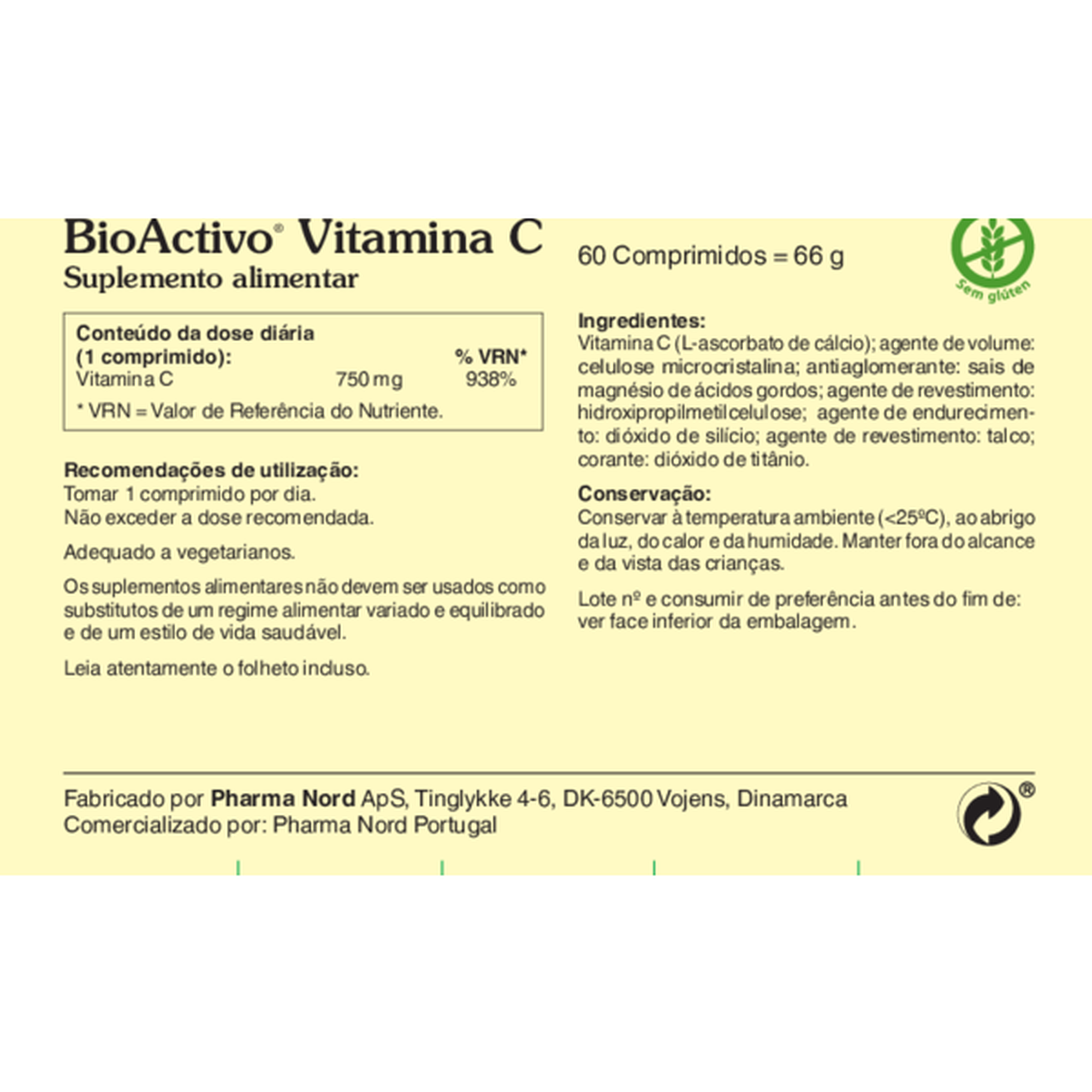 BioActivo Vitamina C consiste em comprimidos revestidos com 750 mg de vitamina C na forma de ascorbato de cálcio, que por ser isenta de acidez é suave para o estômago. BioActivo Vitamina C pode ser tomado junto ou fora da refeição.