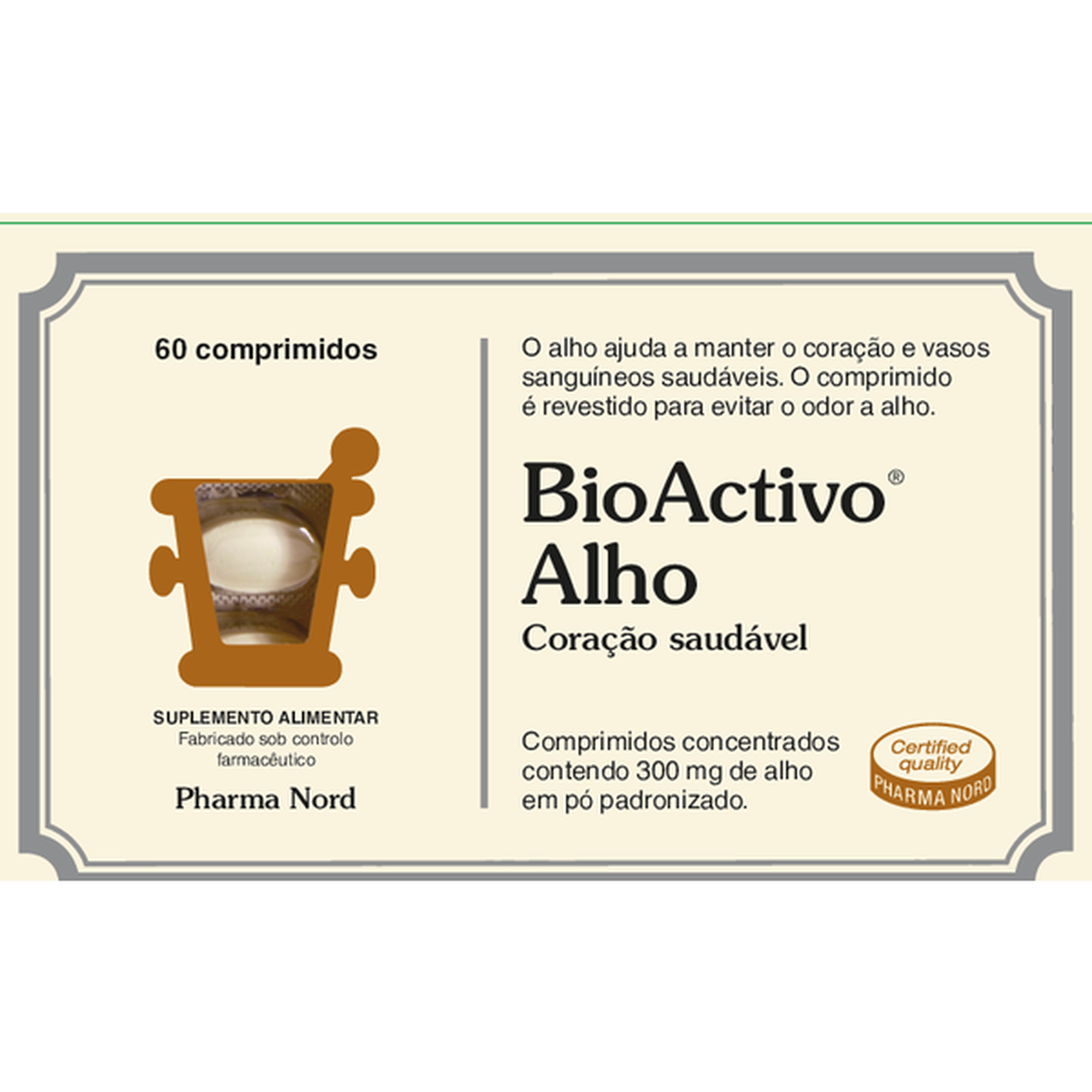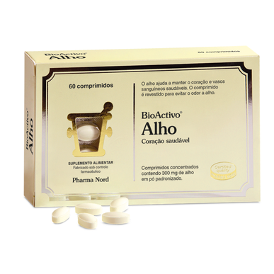 Suplemento alimentar à base de alho que ajuda a manter o coração e vasos sanguíneos saudáveis. O comprimido é revestido para evitar o odor a alho.