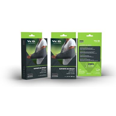 Suporte de braço feito em tecido que proporciona conforto e facilita a respiração.