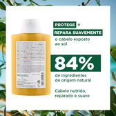 Champô destinado ao cabelo exposto ao sol, lava delicadamente eliminando os resíduos de proteção solar, sal, areia ou cloro. Nutre e protege a fibra capilar, compensando os efeitos secantes dos raios UV. O cabelo reencontra suavidade, flexibilidade e brilho. O cabelo fica sublimado e perfumado. Adequado para cabelos pintados ou com madeixas.