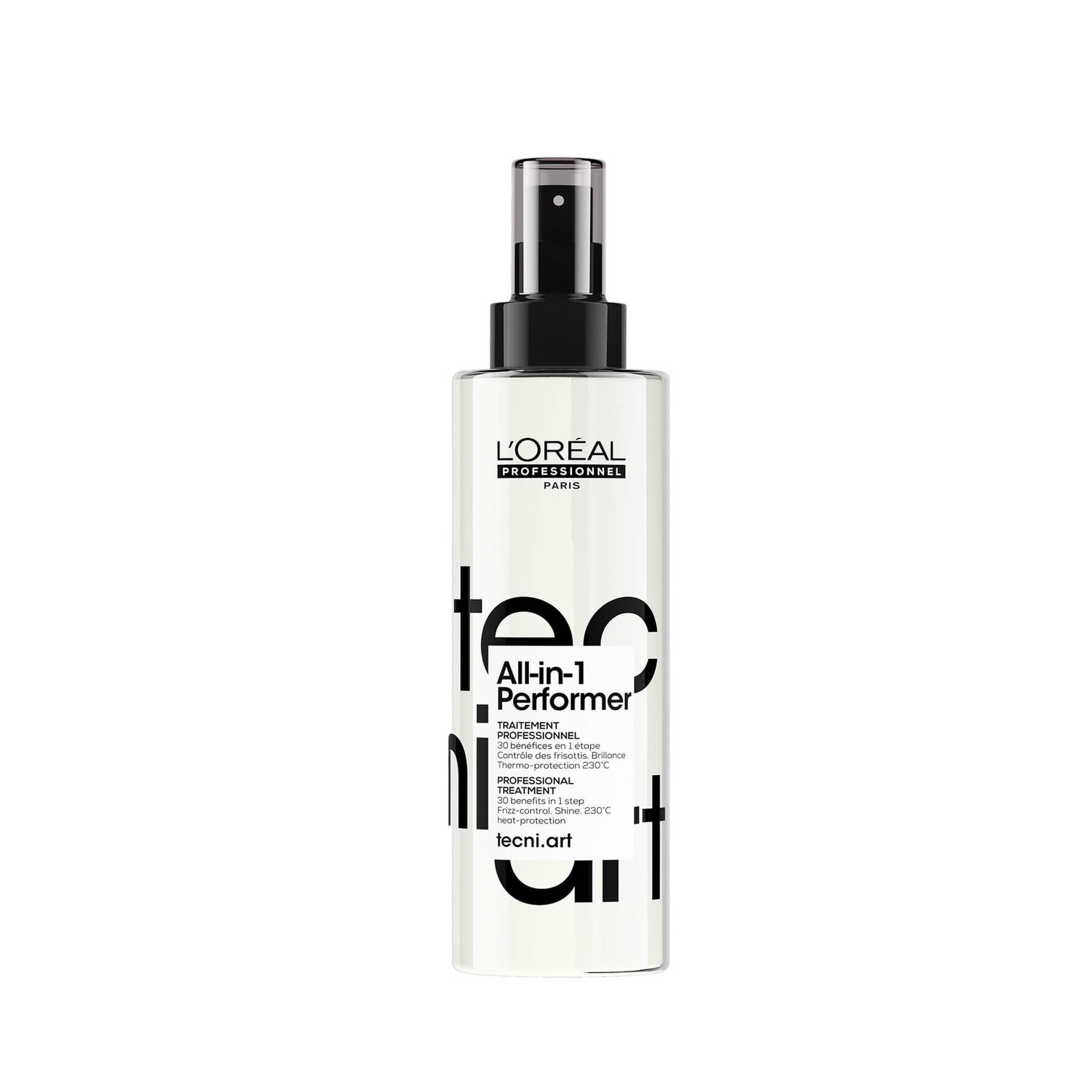Tecni.art All-in-1 Performer, tratamento de styling L'Oréal Professionnel em spray leave-in profissional para 30 benefícios num só passo, incluindo proteção térmica, hidratação, desembaraço sem esforço e brilho, 190 ml.