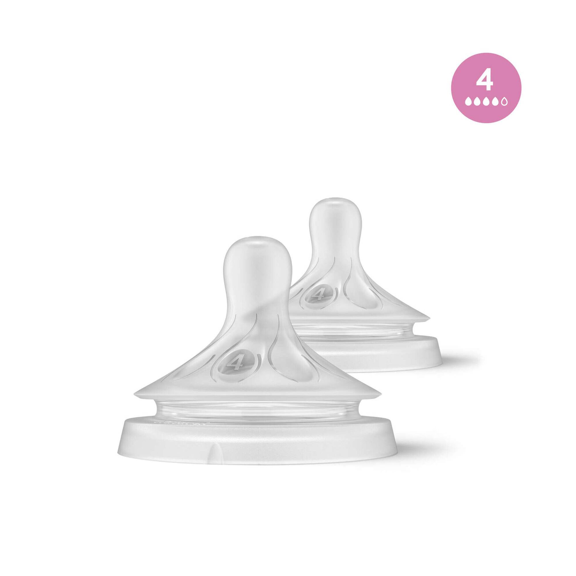 A tetina larga, macia e flexível foi concebida para imitar a forma e a sensação do peito materno;