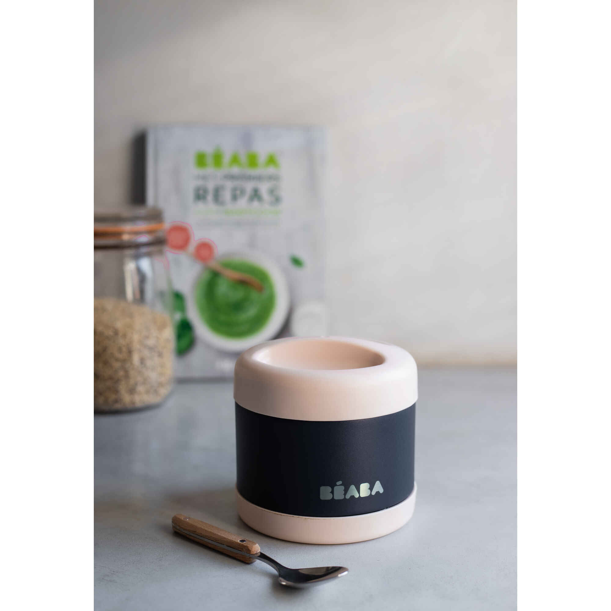 Termo isotérmico em aço inoxidável de 500 ml que permite transportar as refeições do bebé em movimento e manter a temperatura durante várias horas sem transferir sabores ou odores.